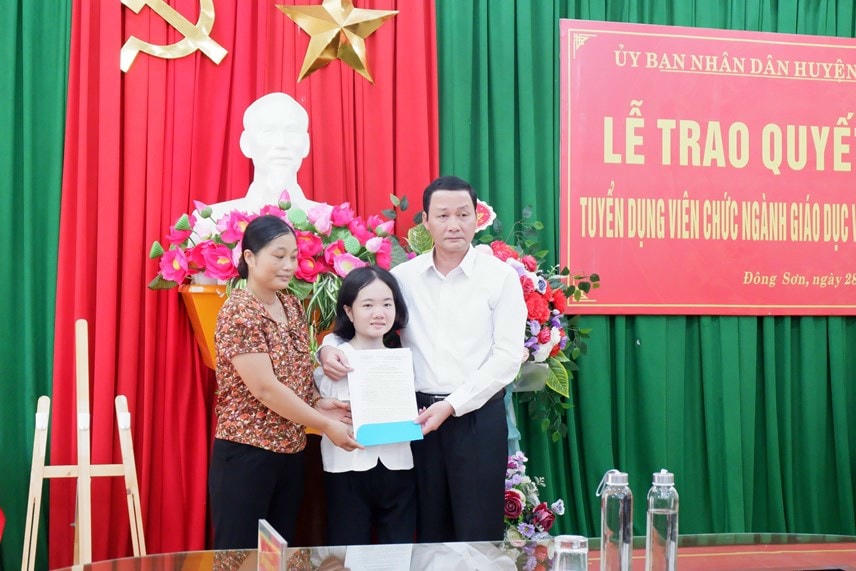 Ngay tại hội trường, ông Đỗ Trọng Hưng, Bí thư Tỉnh ủy đã giao cho Huyện ủy, UBND huyện Đông Sơn xem xét, thực hiện quy trình tuyển dụng đặc cách làm giáo viên đối với cô Lê Thị Thắm.