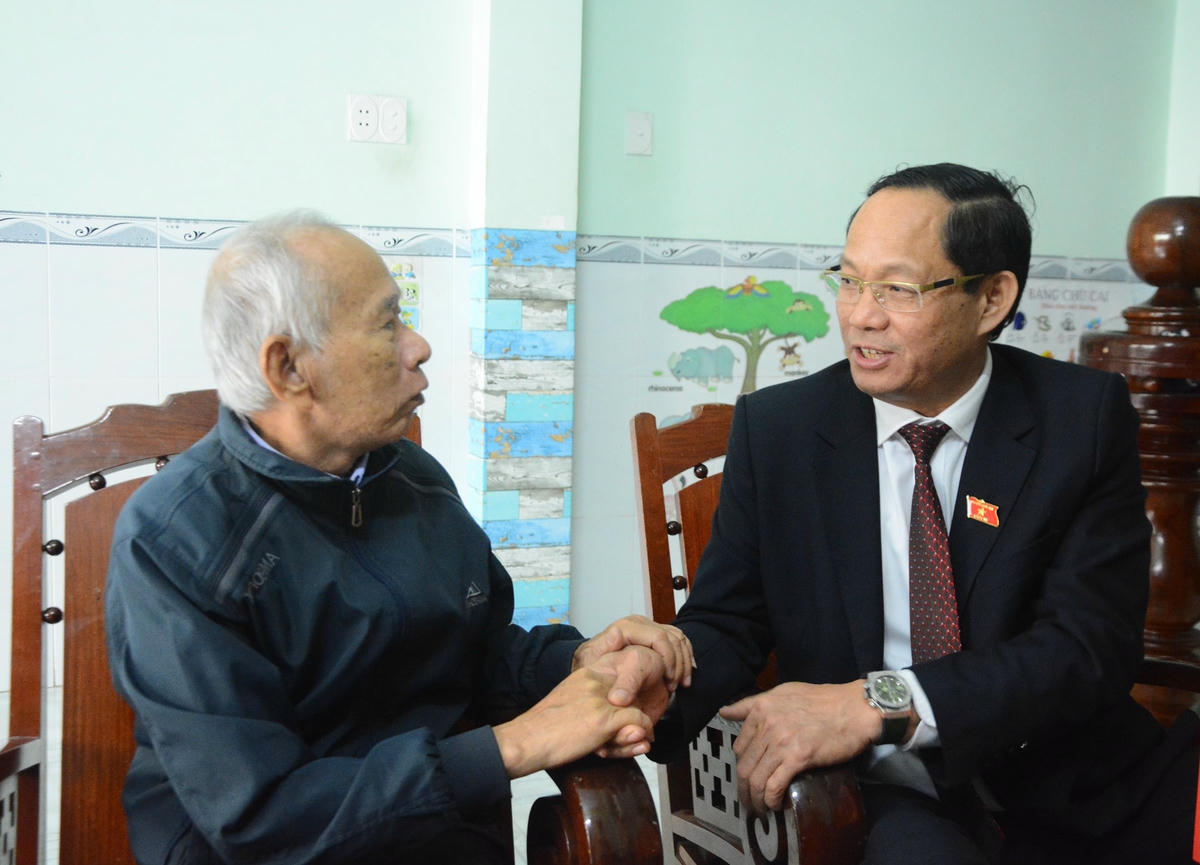 Theo đó, Phó Chủ tịch Quốc hội Trần Quang Phương đã đến thăm, tặng quà cho Mẹ Việt Nam anh hùng (VNAH) Nguyễn Thị Sắng (96 tuổi), trú TP Quảng Ngãi và ông Nguyễn Đức Hồng (77 tuổi, trú TP Quảng Ngãi, là thương binh, Đảng viên 50 năm tuổi Đảng).