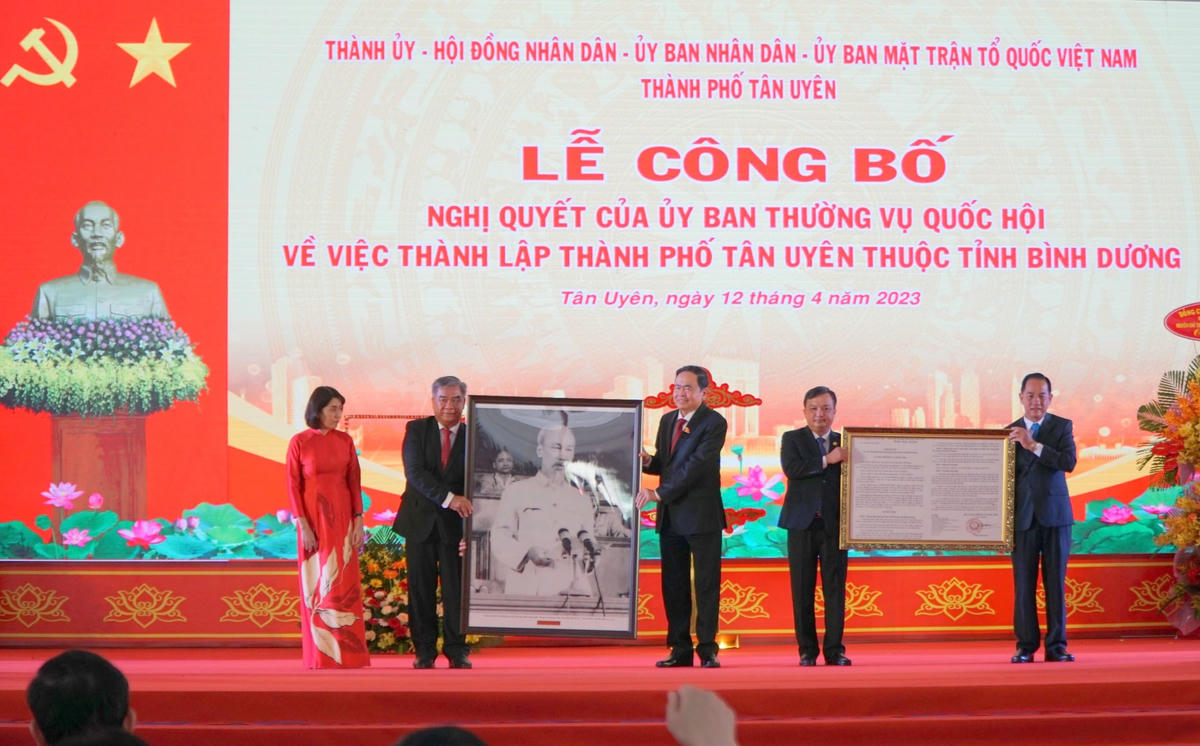 Ngày 12/4, ông Trần Thanh Mẫn, Uỷ viên Bộ Chính trị, Phó chủ tịch Thường trực Quốc hội Trần Thanh Mẫn đã trao Nghị quyết của Uỷ ban Thường vụ Quốc hội lập thành phố mới cho UBND thành phố Tân Uyên, tỉnh Bình Dương.