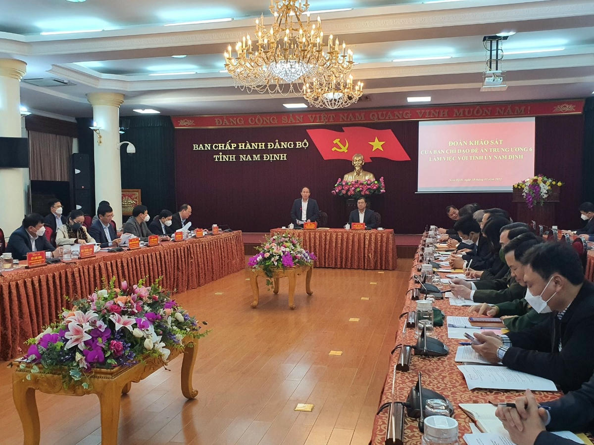 Chiều ngày 18/2, Đoàn công tác của Ban Chỉ đạo xây dựng Đề án “Tổng kết 15 năm thực hiện Nghị quyết Trung ương 5 (khóa X) về tiếp tục đổi mới phương thức lãnh đạo của Đảng đối với hoạt động của hệ thống chính trị” trình Hội nghị Trung ương 6 (khóa XIII), do Ủy viên Trung ương Đảng, Phó Chủ tịch - Tổng Thư ký UBTƯ MTTQ Việt Nam Lê Tiến Châu, Phó ban Chỉ đạo làm trưởng đoàn đã có buổi làm việc với Ban Thường vụ Tỉnh ủy Nam Định nhằm khảo sát việc thực hiện đổi mới phương thức lãnh đạo của Đảng đối với hoạt động của hệ thống chính trị ở Đảng bộ tỉnh này.