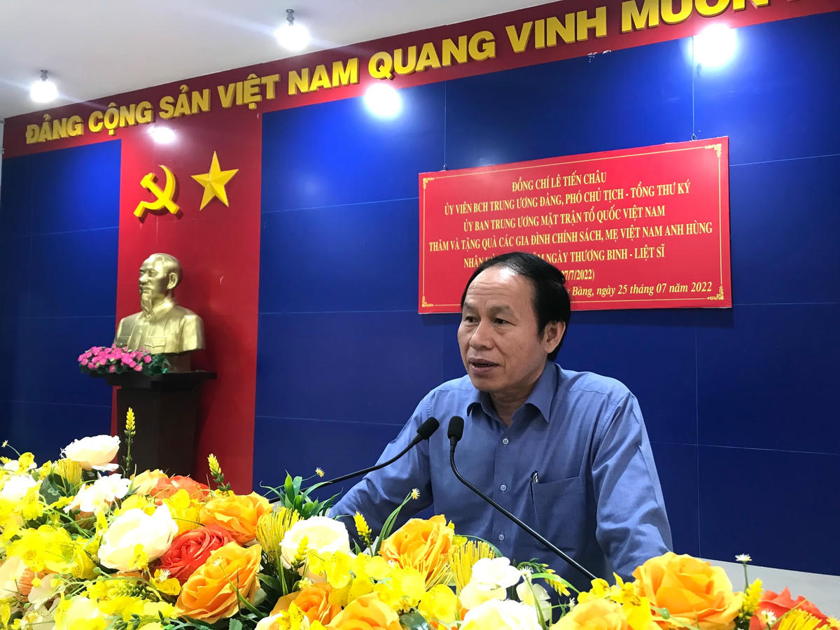 Nhân kỷ niệm 75 năm Ngày Thương binh Liệt sĩ (27/7/1947 - 27/7/2022), ngày 25/7, đoàn công tác của UBTƯ MTTQ Việt Nam do ông Lê Tiến Châu, Ủy viên Trung ương Đảng, Phó Chủ tịch - Tổng Thư ký làm trưởng đoàn đã tới thăm, trao quà cho các gia đình có công với cách mạng tại thị xã Trảng Bàng, tỉnh Tây Ninh.