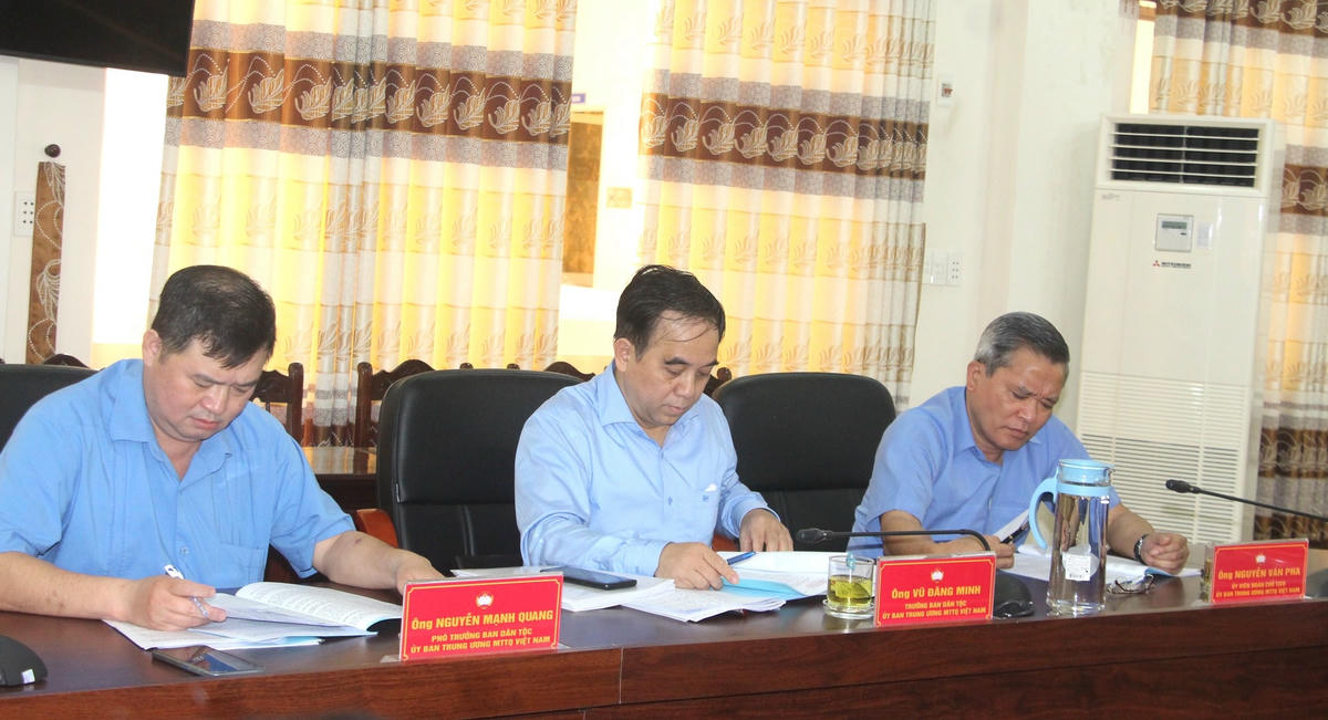 Cùng đi với đoàn có ông Nguyễn Văn Pha, Ủy viên Đoàn Chủ tịch UBTƯ MTTQ Việt Nam; ông Vũ Đăng Minh, Trưởng Ban dân tộc UBTƯ MTTQ Việt Nam; ông Nguyễn Mạnh Quang, Phó Trưởng Ban Dân tộc UBTƯ MTTQ Việt Nam.
