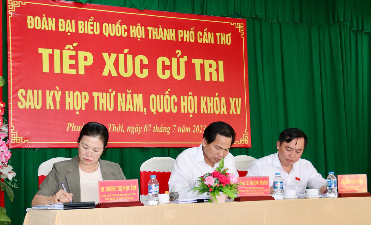 Ngày 7/7, Phó Chủ tịch Ủy ban Trung ương MTTQ Việt Nam Trương Thị Ngọc Ánh cùng Đoàn đại biểu Quốc hội (ĐBQH) TP Cần Thơ (Đơn vị số bầu cử số 2) có buổi tiếp xúc với cử tri phường An Thới (quận Bình Thuỷ), xã Đông Thuận (huyện Thới Lai) và phường Long Hưng (quận Ô Môn) sau kỳ họp Thứ 5, Quốc hội khoá XV.