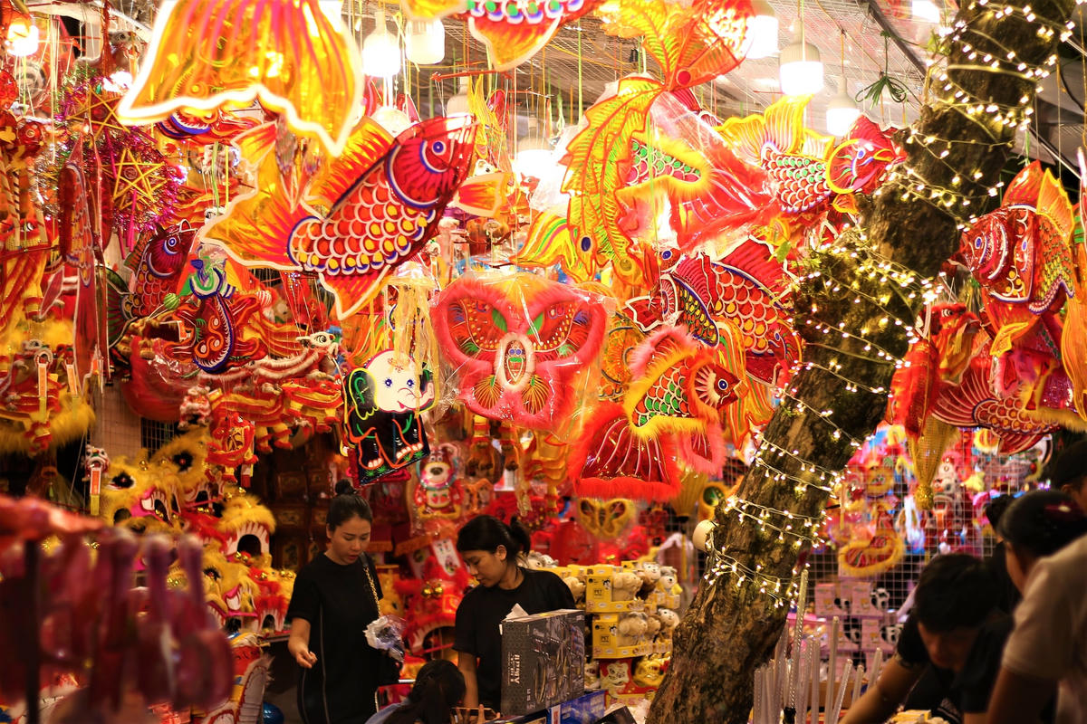 Hơn 2 tuần nữa mới đến Rằm Trung thu tháng 8 nhưng các hộ kinh doanh tại phố Hàng Mã (Hà Nội) đã trang trí rực rỡ, thu hút lượt khách đông đảo ghé tham quan, mua sắm và chụp ảnh bất kể ngày thường.