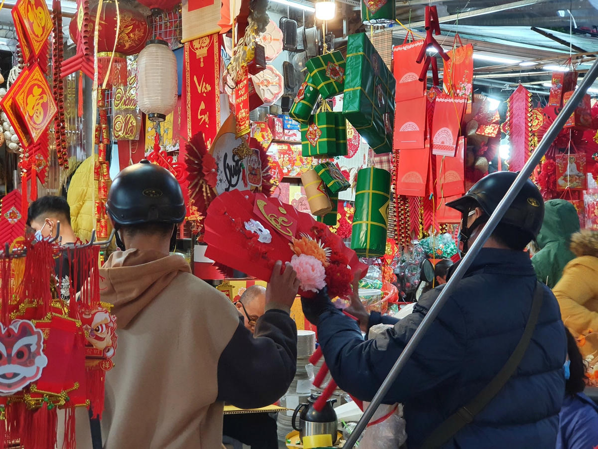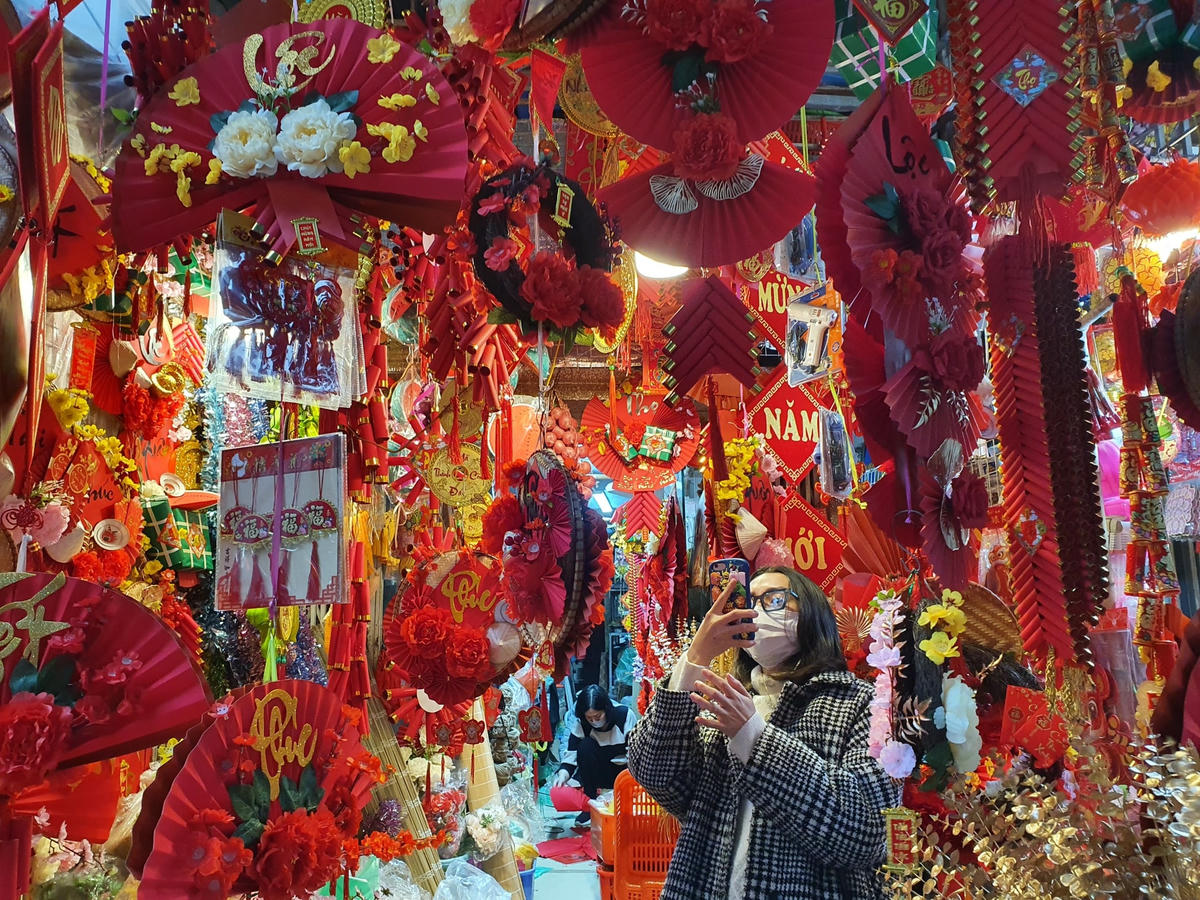 Những ngày cuối năm, phố Hàng Mã bỗng trở nên tấp nập, nhộn nhịp hẳn lên. Người dân đã bắt đầu nô nức mua sắm đồ trang trí chuẩn bị cho Tết Nguyên đán Nhâm Dần 2022.