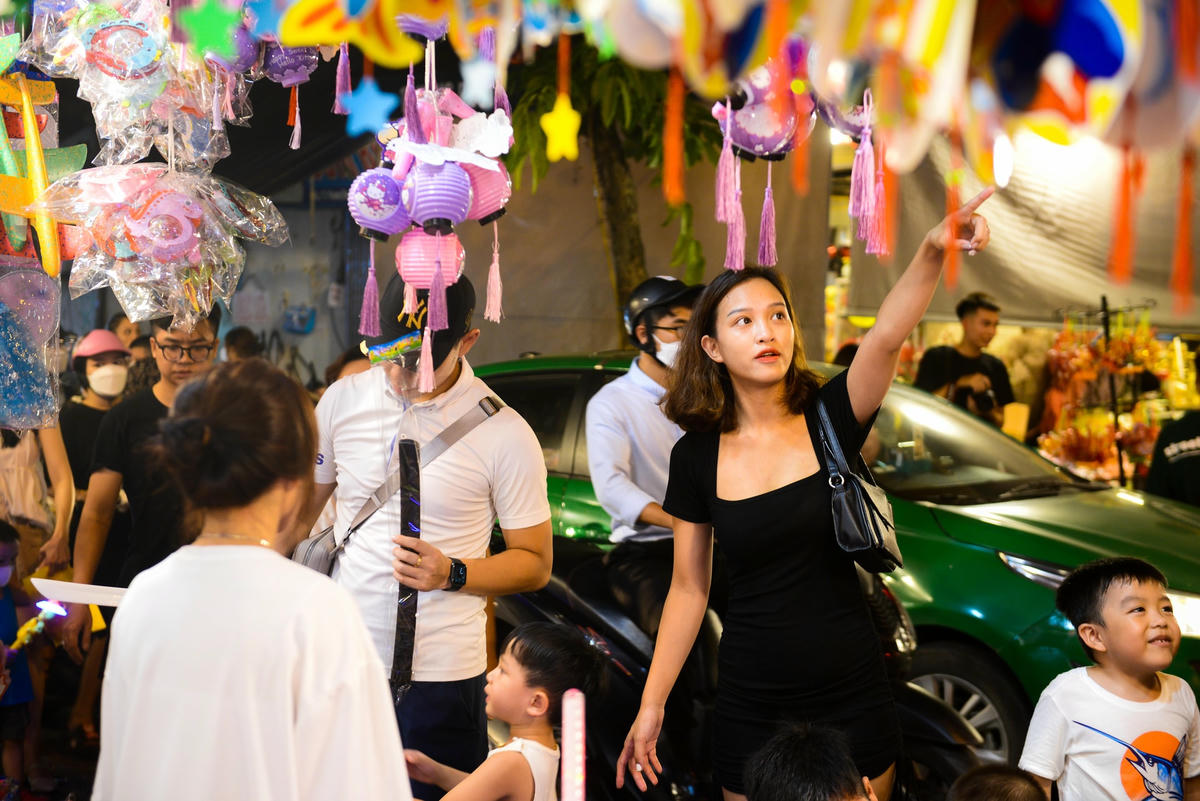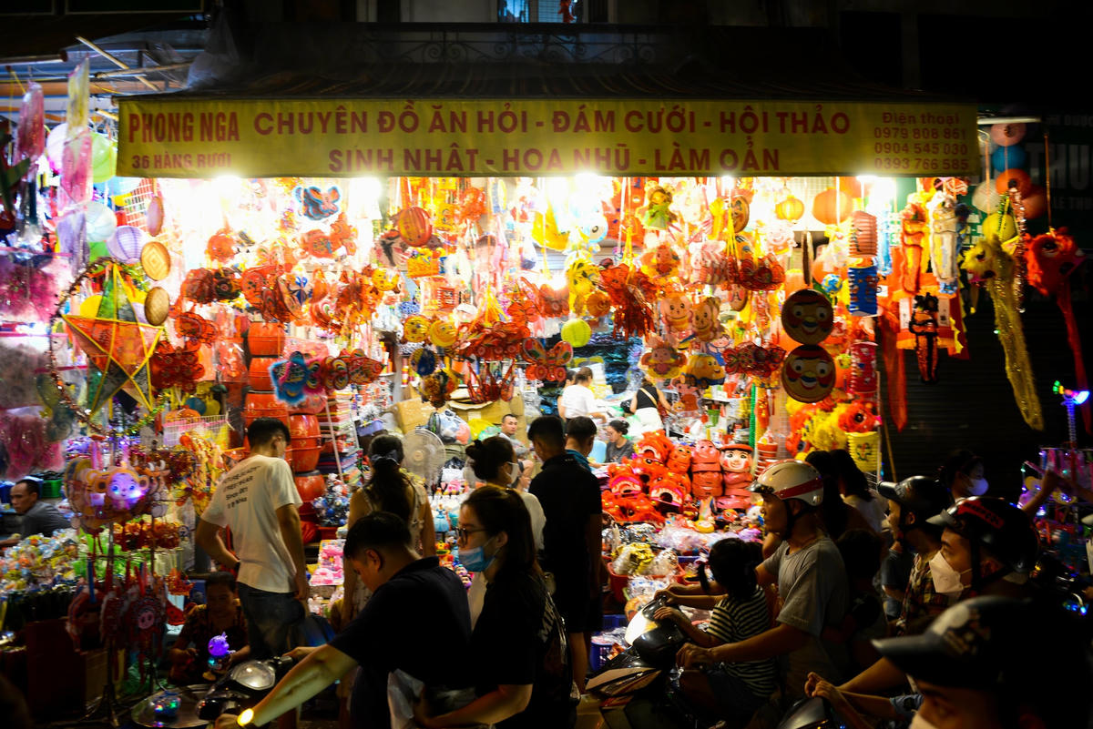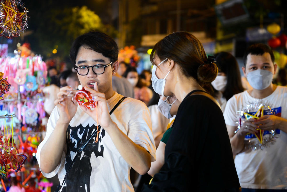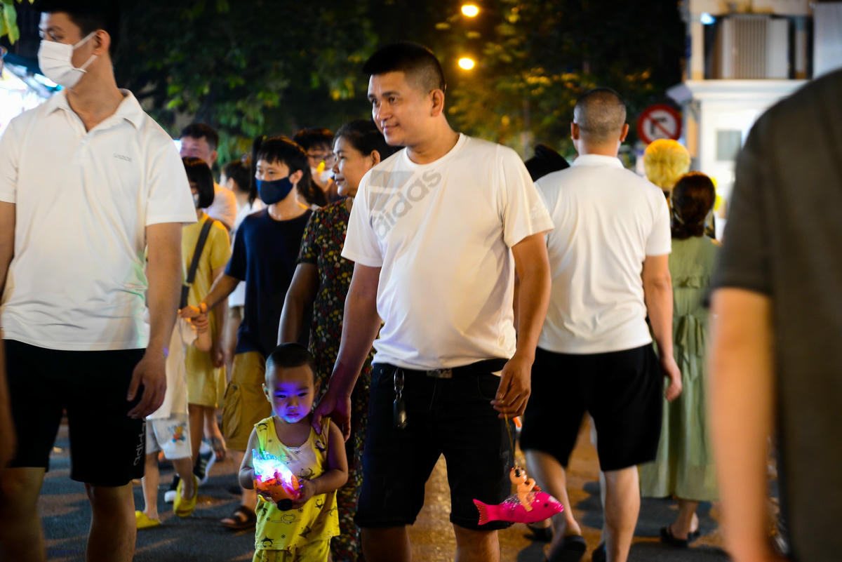 Theo ghi nhận của phóng viên, khoảng 8h tối, người dân đã đổ xô về phố Hàng Mã theo thông lệ hàng năm.Nhiều bạn trẻ tụ tập tại các địa điểm treo đồ chơi, đồ trang trí Trung thu để check in lên mạng xã hộiCẩm Tú (21 tuổi, Cầu Giấy) đi chơi Trung thu sớm. "Mình tưởng đi sớm như này thì sẽ vắng cơ, nhưng không nghĩ Hàng Mã năm nay lại đông đến như vậy, dù mình đã chọn ngày giữa tuần"."Phố Hàng Mã hôm nay thực sự rất đông vui, đường phố cũng rất lung linh. Dù có hơi nóng nhưng mình cảm thấy rất thích thú khi được lên phố chơi". Phương Thảo (20 tuổi) chia sẻ.Các gian hàng đồ chơi, đồ trang trí Trung thu luôn thu hút được sự quan tâm của người dân tham quan.Các bạn trẻ cũng dành một sự quan tâm đặc biệt tới các sản phẩm đồ chơi Trung thu được bày bán tại Hàng Mã.Hàng Mã lung linh cũng thu hút nhiều nhiếp ảnh gia tới tác nghiệp. "Dù trên phố rất đông người, phải chen chúc, thời tiết cũng oi bức, nhưng mình thấy rất đẹp nên quyết định rủ người thân lên phố để làm vài kiểu ảnh". Anh Đoàn Đức (26 tuổi) chia sẻ.Nhiều phụ huynh cũng nhân dịp này để đưa con em mình lên Hàng Mã tham quan. Anh Thục (49 tuổi) đưa con lên phố tham quan. "Mình muốn con trai mình cảm nhận được không khí của ngày Tết Trung thu thông qua những hoạt động, những món đồ chơi truyền thống mà mình mua cho con". Đến khoảng 9h tối, đoạn đường Hàng Mã, Hàng Rươi đã xảy ra tình trạng tắc nghẽn giao thông. Ngay sau đó các lực lượng chức năng đã có mặt để thông xe trên đoạn đường này.