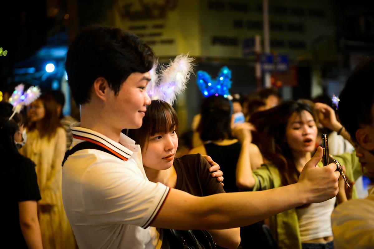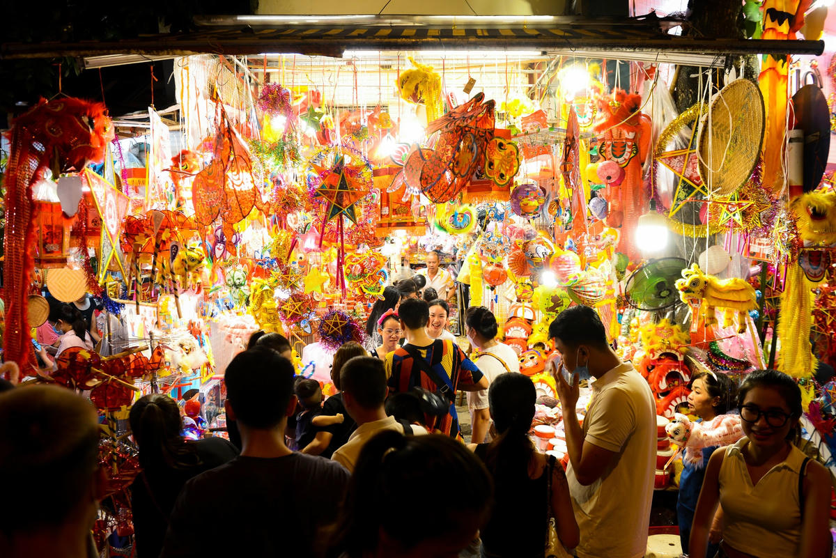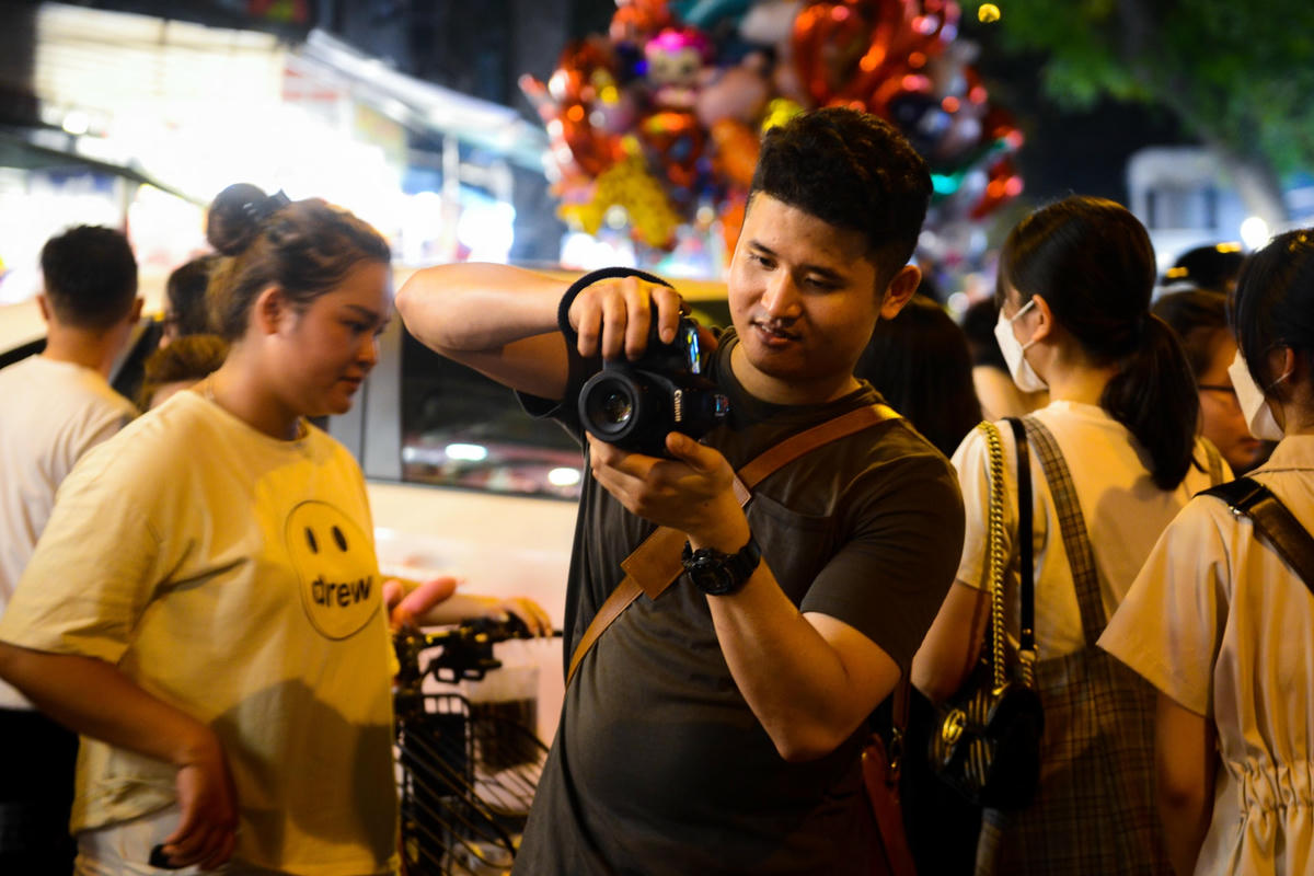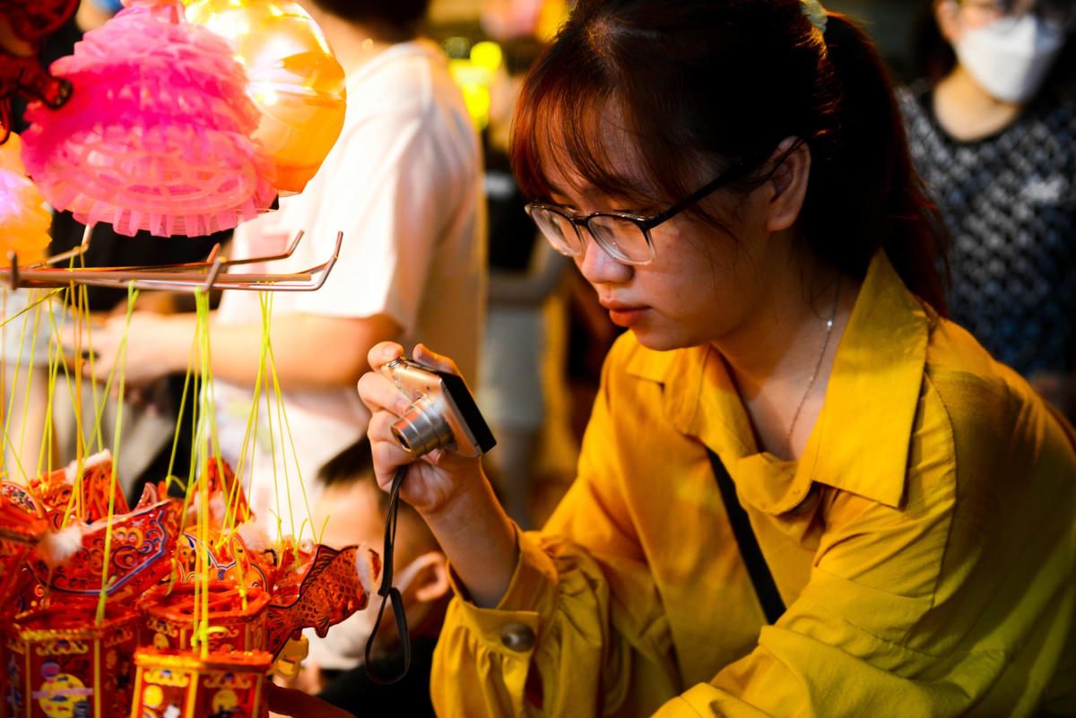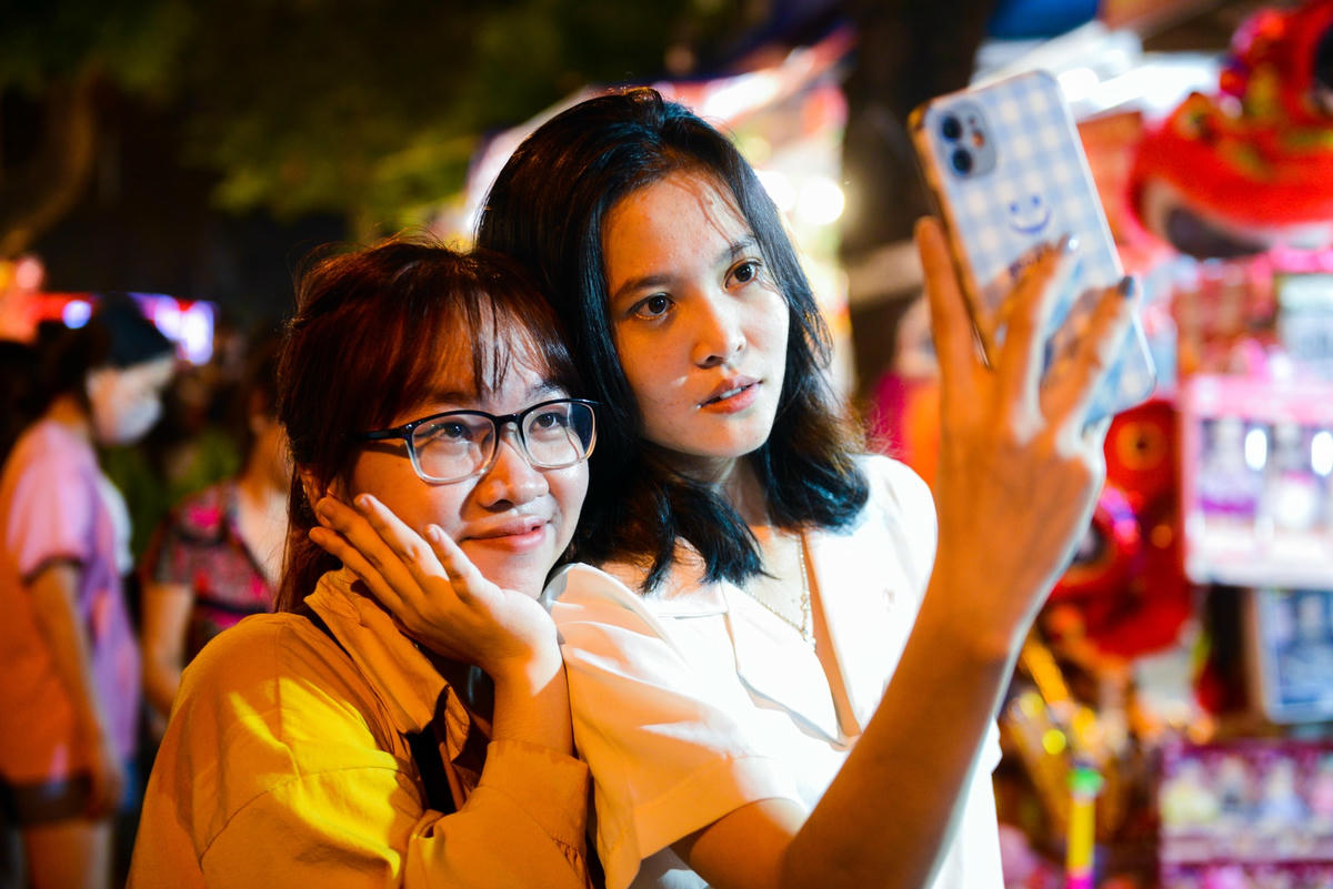 Theo ghi nhận của phóng viên, khoảng 8h tối, người dân đã đổ xô về phố Hàng Mã theo thông lệ hàng năm.Nhiều bạn trẻ tụ tập tại các địa điểm treo đồ chơi, đồ trang trí Trung thu để check in lên mạng xã hộiCẩm Tú (21 tuổi, Cầu Giấy) đi chơi Trung thu sớm. "Mình tưởng đi sớm như này thì sẽ vắng cơ, nhưng không nghĩ Hàng Mã năm nay lại đông đến như vậy, dù mình đã chọn ngày giữa tuần"."Phố Hàng Mã hôm nay thực sự rất đông vui, đường phố cũng rất lung linh. Dù có hơi nóng nhưng mình cảm thấy rất thích thú khi được lên phố chơi". Phương Thảo (20 tuổi) chia sẻ.Các gian hàng đồ chơi, đồ trang trí Trung thu luôn thu hút được sự quan tâm của người dân tham quan.Các bạn trẻ cũng dành một sự quan tâm đặc biệt tới các sản phẩm đồ chơi Trung thu được bày bán tại Hàng Mã.Hàng Mã lung linh cũng thu hút nhiều nhiếp ảnh gia tới tác nghiệp. "Dù trên phố rất đông người, phải chen chúc, thời tiết cũng oi bức, nhưng mình thấy rất đẹp nên quyết định rủ người thân lên phố để làm vài kiểu ảnh". Anh Đoàn Đức (26 tuổi) chia sẻ.Nhiều phụ huynh cũng nhân dịp này để đưa con em mình lên Hàng Mã tham quan. Anh Thục (49 tuổi) đưa con lên phố tham quan. "Mình muốn con trai mình cảm nhận được không khí của ngày Tết Trung thu thông qua những hoạt động, những món đồ chơi truyền thống mà mình mua cho con". Đến khoảng 9h tối, đoạn đường Hàng Mã, Hàng Rươi đã xảy ra tình trạng tắc nghẽn giao thông. Ngay sau đó các lực lượng chức năng đã có mặt để thông xe trên đoạn đường này.