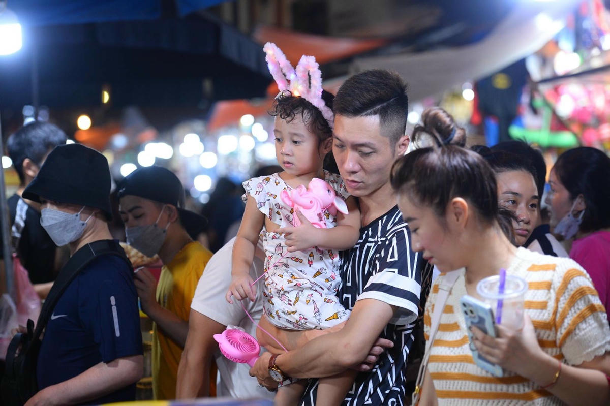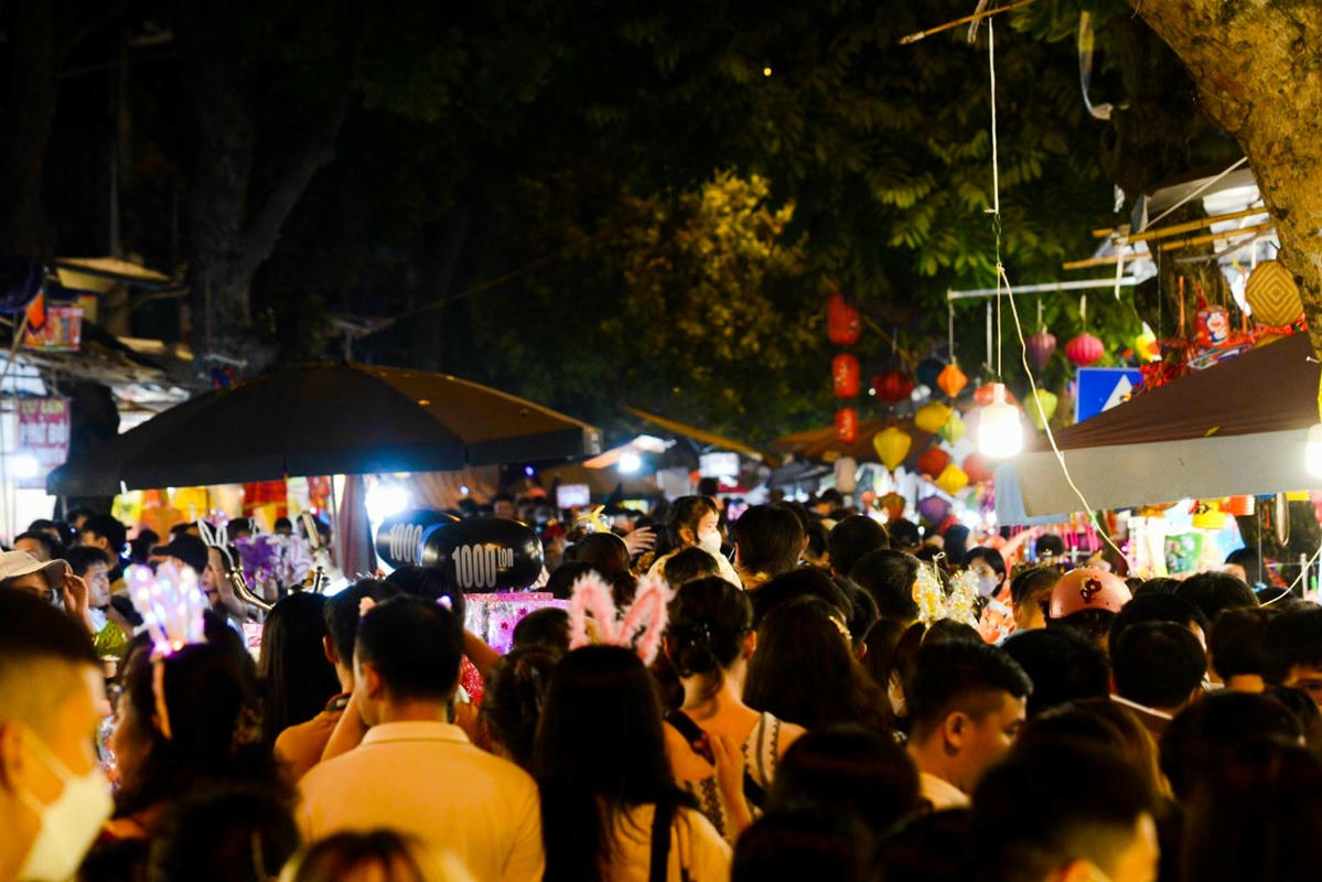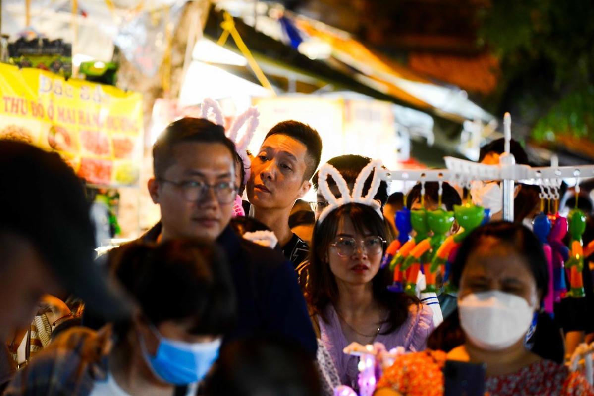 Theo ghi nhận của PV Đại Đoàn Kết Online, chỉ từ khoảng 7h tối, rất đông người dân, khách du lịch đã có mặt tại tuyến phố Hàng Mã.Dòng người chen chân nhau để check in chụp cảnh, đi dạo và mua sắm đồ chơi Trung thu.Sau 3 ngày mưa liên tiếp, thời tiết tối nay khá mát mẻ, phù hợp cho người dân đi chơi.Tuy nhiên, do quá đông đúc nên không ít người cảm thấy nóng bức và tỏ ra mệt mỏi khi phải nhích từng bước một.Những gian hàng đồ chơi Trung thu, đồ ăn vặt không chỉ hấp dẫn các em nhỏ mà cũng nhận được nhiều sự quan tâm của người lớn, đặc biệt là các bạn trẻ."Dù hôm nay lên phố thật sự rất nhiều người, việc di chuyển cũng không dễ dàng, nhưng mình thấy một năm chỉ có một lần nên mình vẫn muốn lên Hàng Mã để tận hưởng trọn vẹn không khí Trung thu". Anh Vũ Hoàng (Xuân La, Tây Hồ) chia sẻ.Vì sát ngày cuối tuần, nên nhiều gia đình đã lựa chọn đưa con em mình đi chơi.Anh Tú (Cầu Giấy) cho biết: "Năm nay mình quyết định đưa con trai mình lên phố để tận hưởng không khí Trung thu. Tuy có hơi đông người nhưng Hàng Mã hôm nay thực sự rất lung linh và nhộn nhịp" Dù đã được mở rộng sang phố Hàng Gà, Hàng Cót thì Hàng Mã đã chính thức phải "thất thủ" trước biển người quá lớn đổ về đây chỉ sau một tiếng đồng hồ.