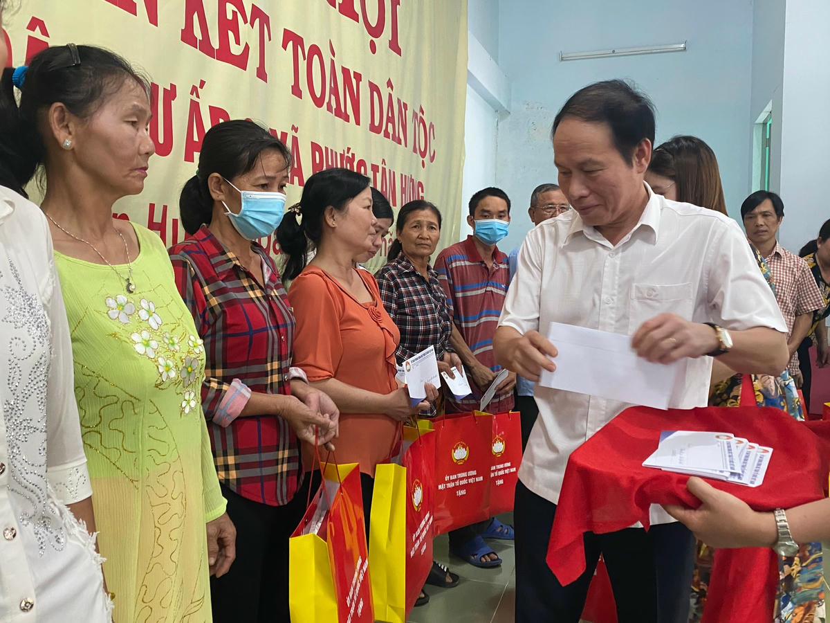 Cũng trong dịp này, lãnh đạo Trung ương và địa phương đã trao tặng nhiều suất quà như tiền, quà cho các hộ nghèo hay xe đạp cho các em học sinh cùng 10 căn nhà Đại đoàn kết cho người dân trong ấp với tổng số tiền 500 triệu đồng.