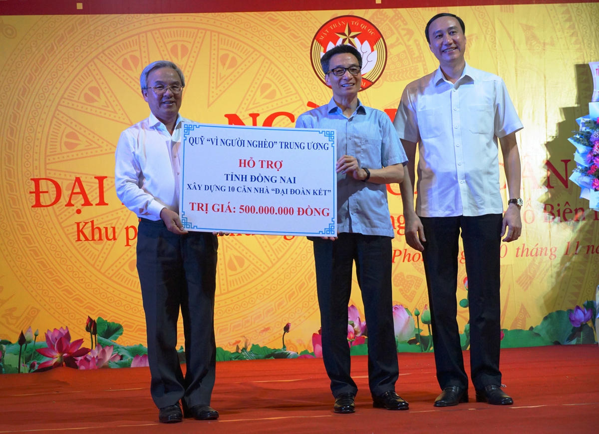 Dịp này, Phó Thủ tướng Chính phủ Vũ Đức Đam cũng đã trao tặng các phần quà đến các gia đình chính sách, người có công trên địa bàn. Quỹ Vì Người nghèo của Trung ương cũng trao tặng tỉnh Đồng Nai 10 căn Nhà Đại đoàn kết trị giá 500 triệu đồng.