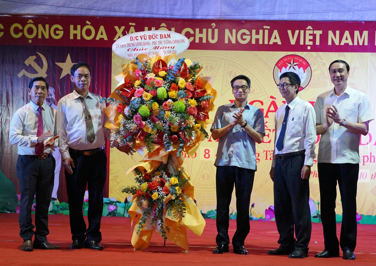 Phát biểu chúc mừng đến toàn thể nhân dân khu phố, Phó Thủ tướng Vũ Đức Đam khẳng định, ngày hội Đại đoàn kết không chỉ là dịp để ôn lại truyền thống vẻ vang của Mặt trận Tổ quốc Việt Nam, khơi dậy tinh thần đoàn kết, gắn bó của nhân dân trong cộng đồng mà còn là dịp đánh giá kết quả thực hiện các cuộc vận động, các phong trào thi đua yêu nước góp phần xây dựng nông thôn mới, đô thị văn minh và giảm nghèo bền vững; biểu dương, tôn vinh những tập thể, cá nhân tiêu biểu có thành tích xuất sắc trong xây dựng và phát triển cộng đồng dân cư, kết quả xây dựng khối đại đoàn kết toàn dân tộc ở cộng đồng dân cư.