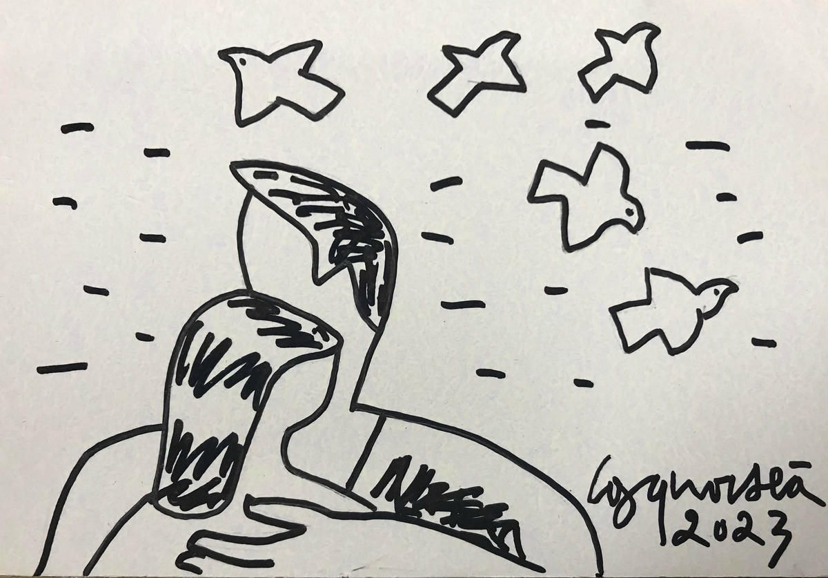 “Rìu... rìu… rà… rà… ríu ríu… rắt rắt”. “Gù… gù… gù”. Tiếng chim sẻ và tiếng chim bồ câu gù chìm vào thanh âm hỗn loạn. Những con bồ câu gầy guộc, lông khô và xơ xác. Còn chim sẻ thì con lờ đờ, con nhảy loạn xạ, có con vành mắt xước sát, chân rướm máu. Đúng là cá chậu chim lồng, chúng thật tội nghiệp và đáng thương.