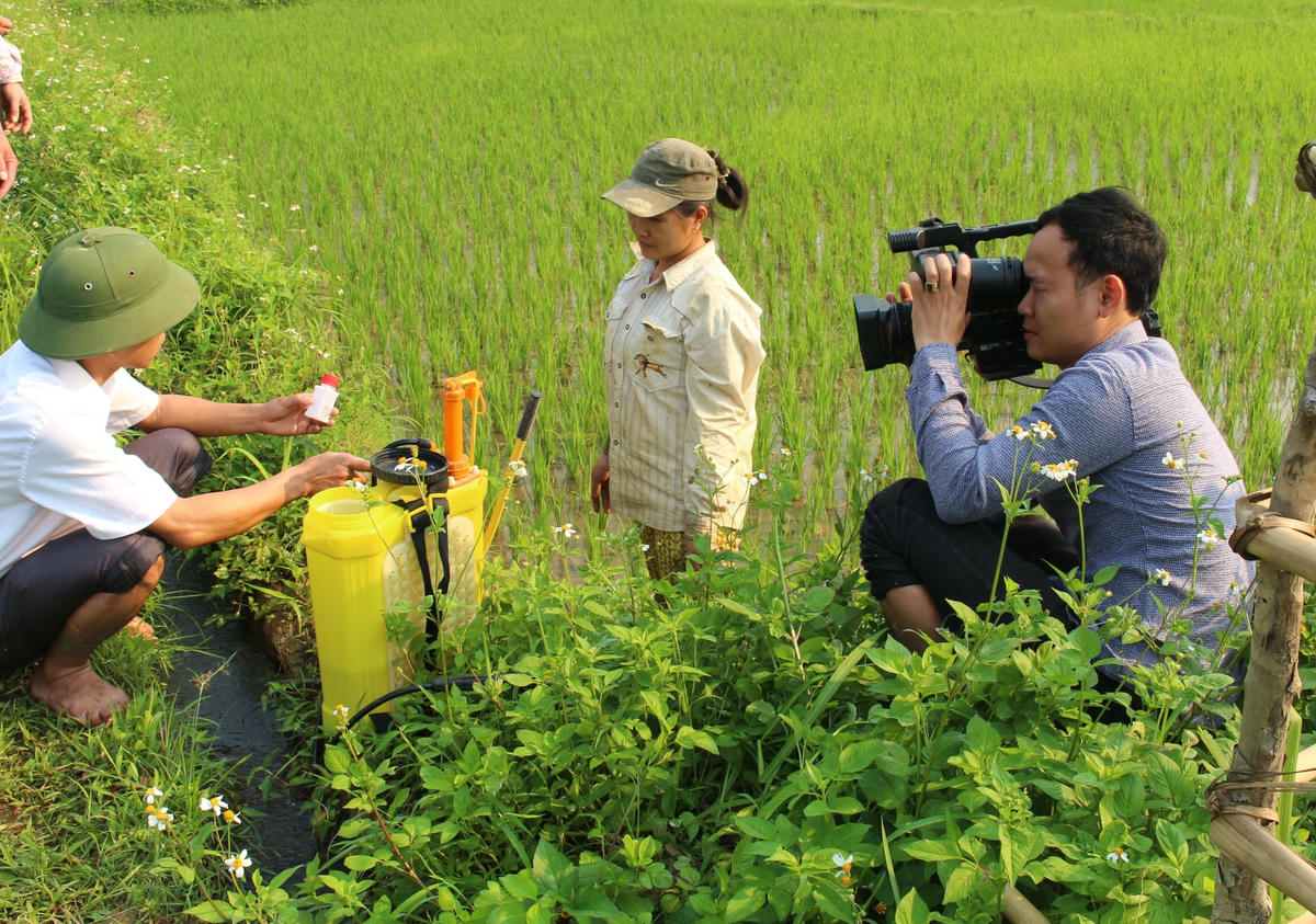 Phóng viên Lữ Phú trong một chuyến công tác về bản.
