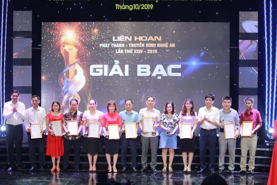 PV Lữ Phú (đứng thứ 4 từ trái sang) nhận giải Bạc tại Liên hoan Phát thanh - Truyền hình Nghệ An năm 2019.