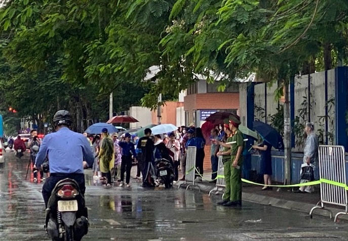 Sáng nay, dù trời đổ mưa to đúng khung giờ các thí sinh bước vào môn thi Ngữ Văn, nhưng xung quanh cổng trường, các phụ huynh đã bắt đầu đưa con mình đến trường với tâm thế hồi hộp. Nhiều phụ huynh vì lo lắng nên đã đứng chờ các em cho đến khi thi xong.