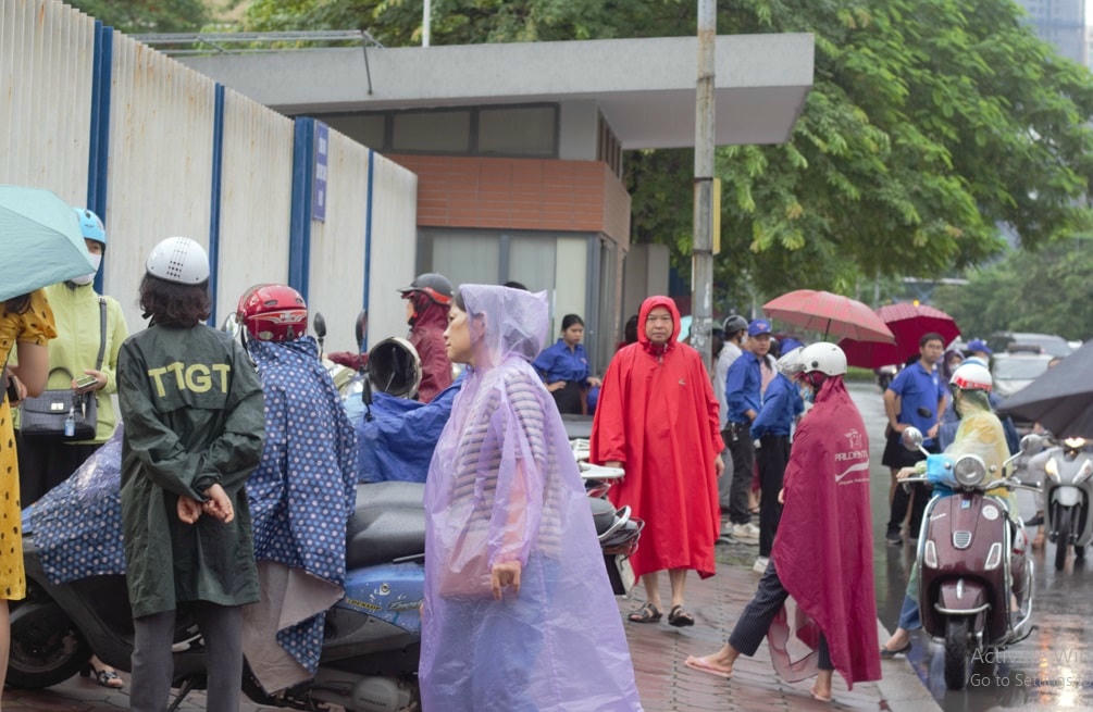 Phụ huynh 'đội mưa' chờ con thi tốt nghiệp THPT 2023