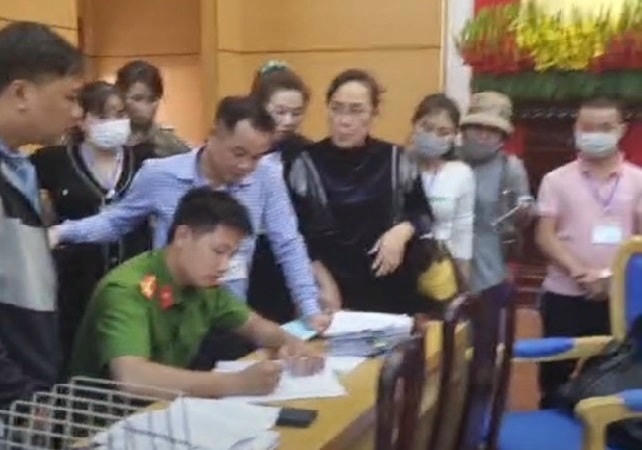 Sau khi công bố giá trúng đấu giá của 10 ô đất đầu tiên, một số khách hàng có hồ sơ tham gia buổi đấu giá đã phát hiện sai phạm trong hồ sơ được công bố trúng đấu giá nên đã yêu cầu dừng cuộc đấu giá, đồng thời gọi công an đến làm việc, cũng như phát clip lên mạng.