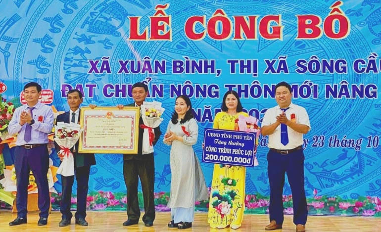 Nhân dịp này, UBND tỉnh Phú Yên đã trao bằng công nhận xã đạt chuẩn nông thôn mới nâng cao năm 2023 cho UBND Xuân Bình, đồng thời tặng 200 triệu đồng, UBND TX. Sông Cầu tặng 100 triệu đồng cho xã Xuân Bình để thực hiện công trình phúc lợi và biểu dương, khen thưởng 3 tập thể và 10 cá nhân có thành tích xuất sắc trong phong trào xây dựng nông thôn mới nâng cao xã Xuân Bính trong thời gian qua.