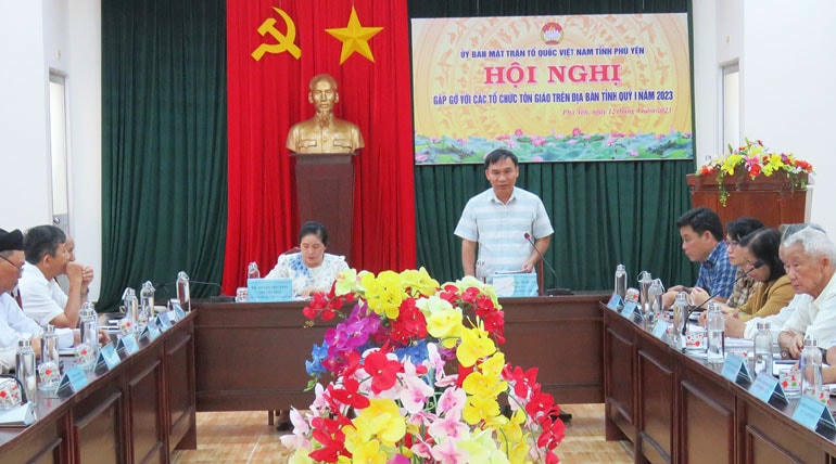 Chiều 12/4, Ủy ban MTTQ Việt Nam tỉnh Phú Yên, tổ chức hội nghị gặp gỡ các tổ chức tôn giáo quý I/2023. Ông Nguyễn Quốc Hoàn, Ủy viên Ban Thường vụ Tỉnh ủy, Chủ tịch Ủy ban MTTQ Việt Nam tỉnh Phú Yên, bà Đỗ Thị Như Tình, Phó Chủ tịch Ủy ban MTTQ tỉnh Việt Nam tỉnh Phú Yên, chủ trì hội nghị, với sự tham dự của hơn 35 chức sắc đại diện các tổ chức tôn giáo trên địa bàn tỉnh Phú Yên về dự.