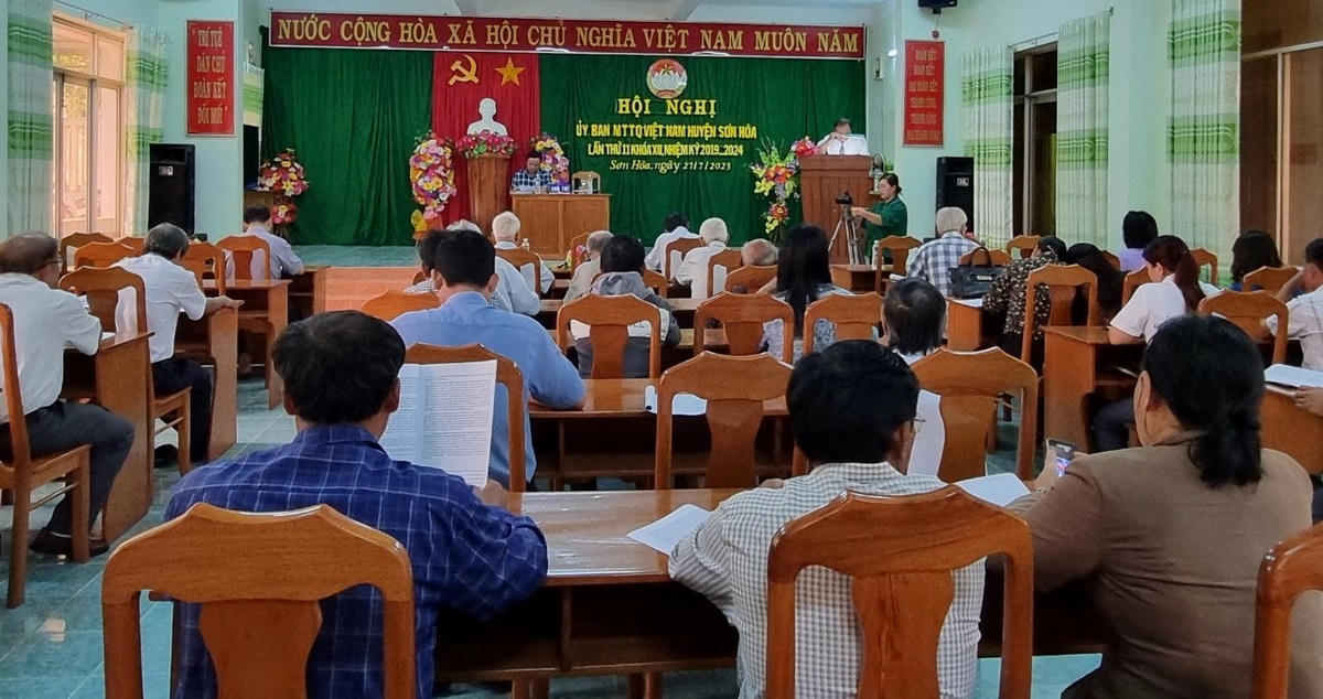 Ngày 28/7,Ủy ban MTTQ huyện Sơn Hòa (Phú Yên) tổ chức hội nghị sơ kết công tác 6 tháng đầu năm, triển khai nhiệm vụ 6 tháng cuối năm 2023; hiệp thương bổ sung ủy viên Ủy ban MTTQ huyện khóa XII.