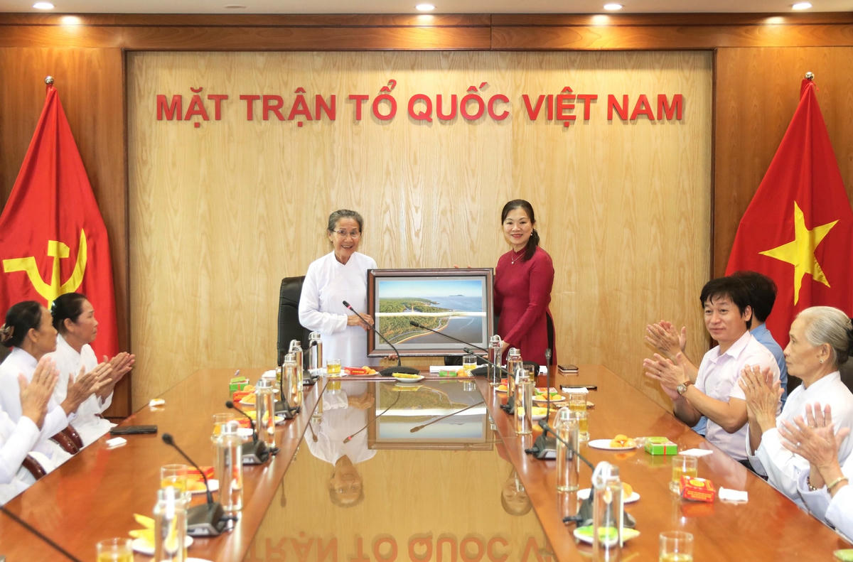 Ngày 19/9, tại Hà Nội, Đoàn đại biểu Nữ phái Hội thánh Cao Đài Minh Chơn đạo đã đến chào thăm UBTƯ MTTQ Việt Nam. Bà Trương Thị Ngọc Ánh, Phó Chủ tịch UBTƯ MTTQ Việt Nam thân mật tiếp đoàn.