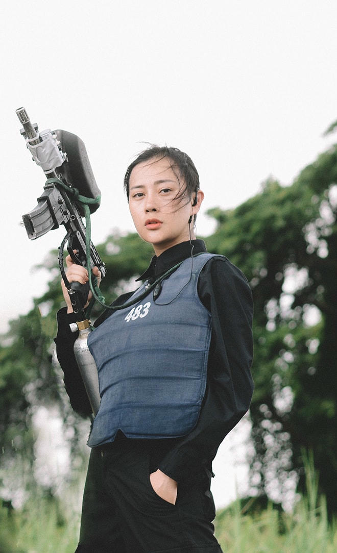 Dù có phần già hơn tuổi và trở thành tâm điểm để nhiều người đem ra so sánh, thế nhưng không ai phủ nhận được gương mặt gai góc, mạnh mẽ của “thiếu úy Hạ Lam” trong những shot hình.