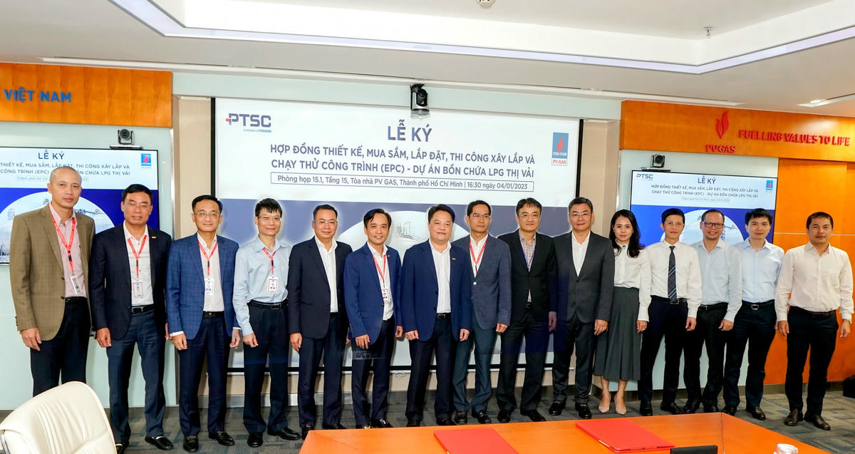Ngày 4/1/2023, tại trụ sở PV GAS TP HCM đã diễn ra Lễ ký Hợp đồng “Thiết kế, mua sắm, lắp đặt, thi công xây lắp và chạy thử công trình (EPC) – Dự án Bồn chứa LPG Thị Vải” giữa Chi nhánh Tổng công ty Khí Việt Nam - Công ty Quản lý Dự án Khí và Tổng công ty Cổ phần Dịch vụ Kỹ thuật Dầu khí Việt Nam.