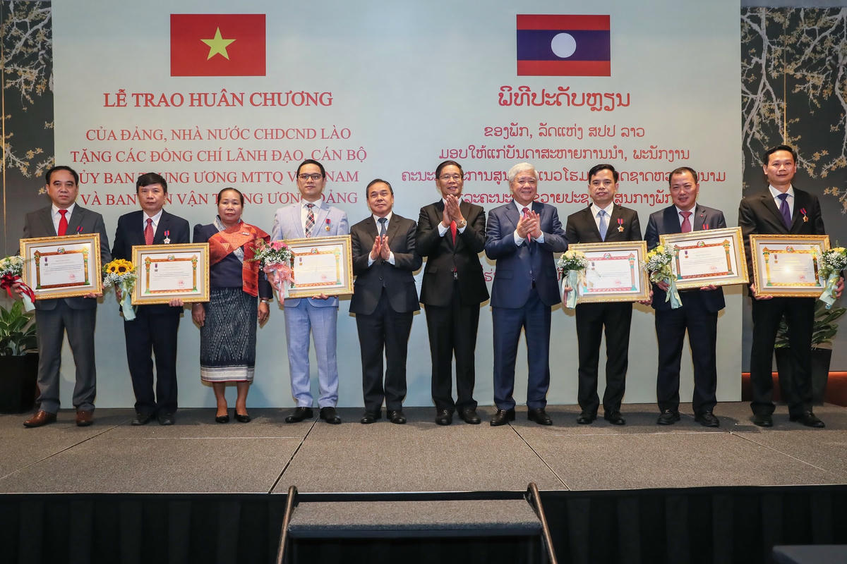 Chiều 25/4, tại Hà Nội, đã diễn ra Lễ trao Huân chương của Đảng, Nhà nước CHDCND Lào tặng các vị lãnh đạo, cán bộ UBTƯ MTTQ Việt Nam và Ban Dân vận Trung ương. Thay mặt lãnh đạo Đảng, Nhà nước CHDCND Lào, Ủy viên Bộ Chính trị Đảng Nhân dân Cách mạng Lào, Chủ tịch Ủy ban Trung ương Mặt trận Lào xây dựng đất nước Sinlavong Khoutphaythoune đã trao tặng Huân chương Ít-xa-la hạng II và hạng III cho các cán bộ lãnh đạo UBTƯ MTTQ Việt Nam, Ban Dân vận Trung ương; trao tặng Huân chương Lao động hạng I, II, III cho các cá nhân của UBTƯ MTTQ Việt Nam. Nhân dịp này, Trung ương Mặt trận Lào xây dựng đất nước cũng trao tặng Kỷ niệm chương cho các cá nhân thuộc UBTƯ MTTQ Việt Nam vì đã có thành tích xuất sắc trong công tác vun đắp quan hệ hữu nghị giữa Lào - Việt Nam.