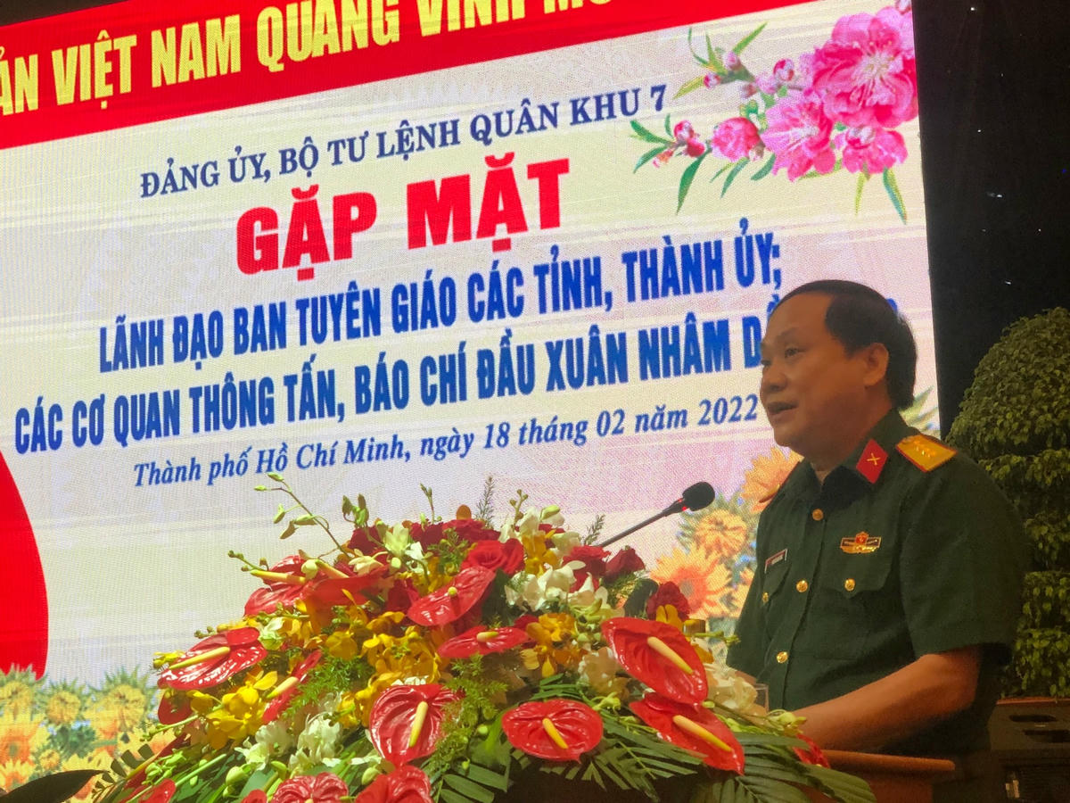 Chiều 18/2, Đảng ủy, Bộ Tư lệnh Quân khu 7 tổ chức gặp mặt lãnh đạo Ban Tuyên giáo các tỉnh, thành ủy và đại diện cơ quan thông tấn, báo chí Trung ương và địa phương đóng trên địa bàn nhân dịp đầu xuân Nhâm Dần 2022.