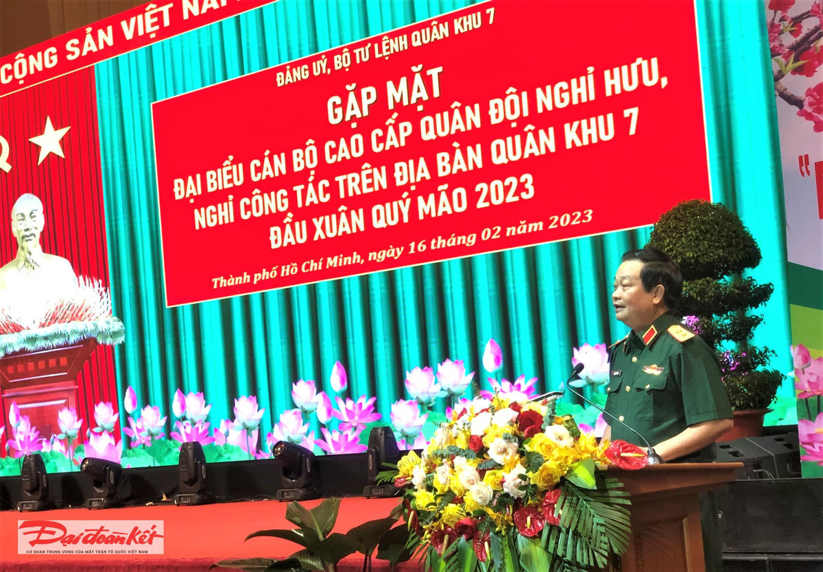 Sáng 16/2, Đảng uỷ, Bộ Tư lệnh Quân khu 7 đã tổ chức buổi gặp mặt đại biểu là tướng lĩnh, cán bộ cao cấp Quân đội nghỉ hưu, nghỉ công tác trên địa bàn Quân khu nhân dịp đầu Xuân Quý Mão 2023.