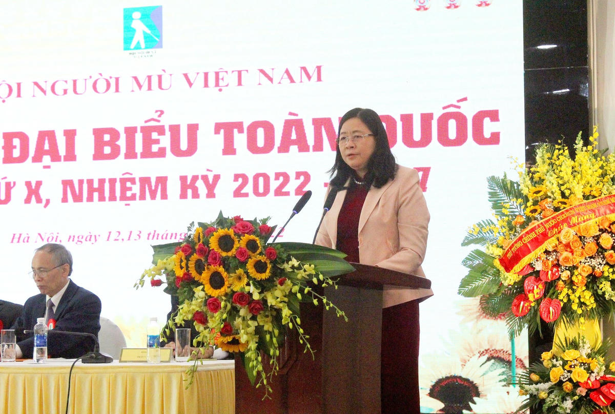 Phát biểu tại Đại hội, Trưởng Ban Dân vận Trung ương Bùi Thị Minh Hoài ghi nhận và đánh giá cao những kết quả Hội Người mù Việt Nam đã đạt được trong nhiệm kỳ vừa qua, cùng với đó là việc triển khai hiệu quả các phong trào, cuộc vận động do UBTƯ MTTQ Việt Nam, các đoàn thể và địa phương phát động.
