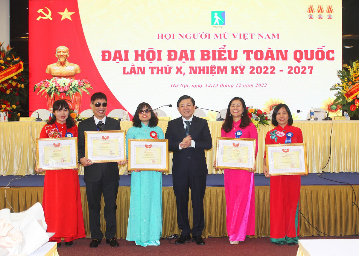 Nhân dịp này, Phó Chủ tịch UBTƯ MTTQ Việt Nam Nguyễn Hữu Dũng đã trao tặng Bằng khen của UBTƯ MTTQ Việt Nam cho Hội Người mù Việt Nam và 5 cá nhân có thành tích xuất sắc trong công tác Hội nhiệm kỳ 2017 - 2022, góp phần vào sự nghiệp xây dựng và bảo vệ Tổ quốc.