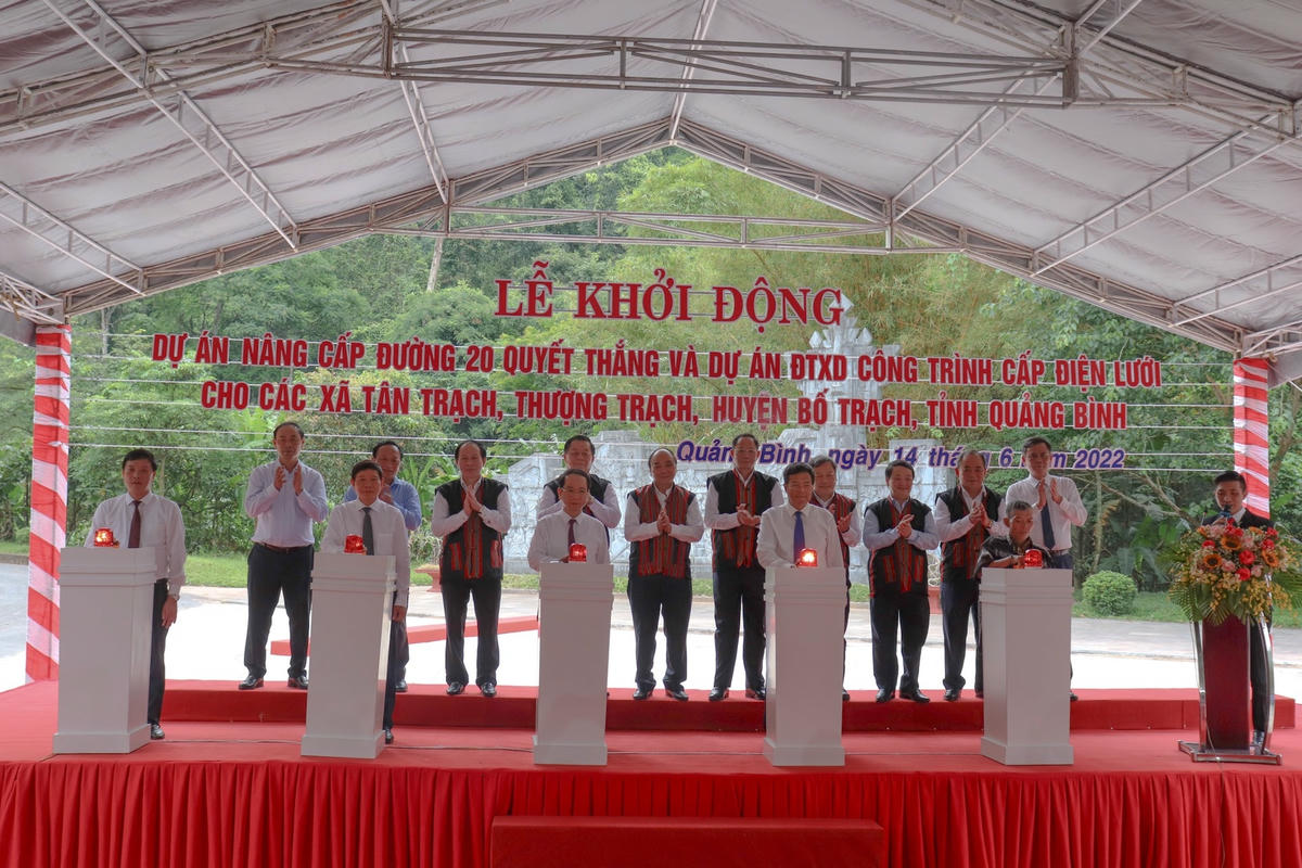 Tiếp đó, đoàn đã đến dự lễ khởi động Dự án cấp điện cho 2 xã Tân Trạch, Thượng Trạch (huyện Bố Trạch) và Dự án nâng cấp đường 20 Quyết thắng.