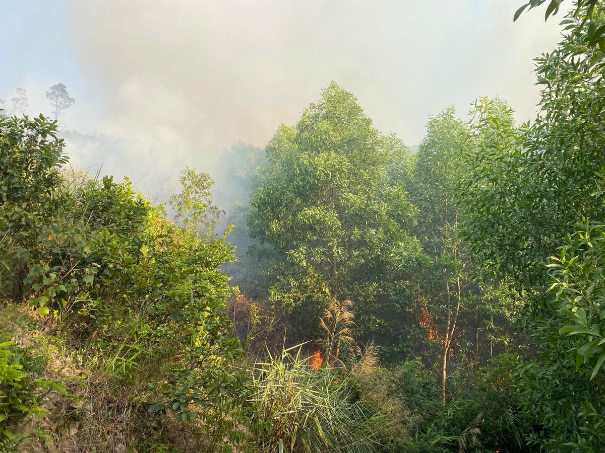 Tuy nhiên, khu vực xảy ra đám cháy ở vị trí ngọn núi cao gần 1.000 m, địa hình đồi núi đá phức tạp, thực bì dày, kết hợp gió thổi mạnh, thời tiết nắng nóng gay gắt… khiến công tác tiếp cận, dập lửa gặp nhiều khó khăn nên vẫn chưa khống chế được đám cháy.