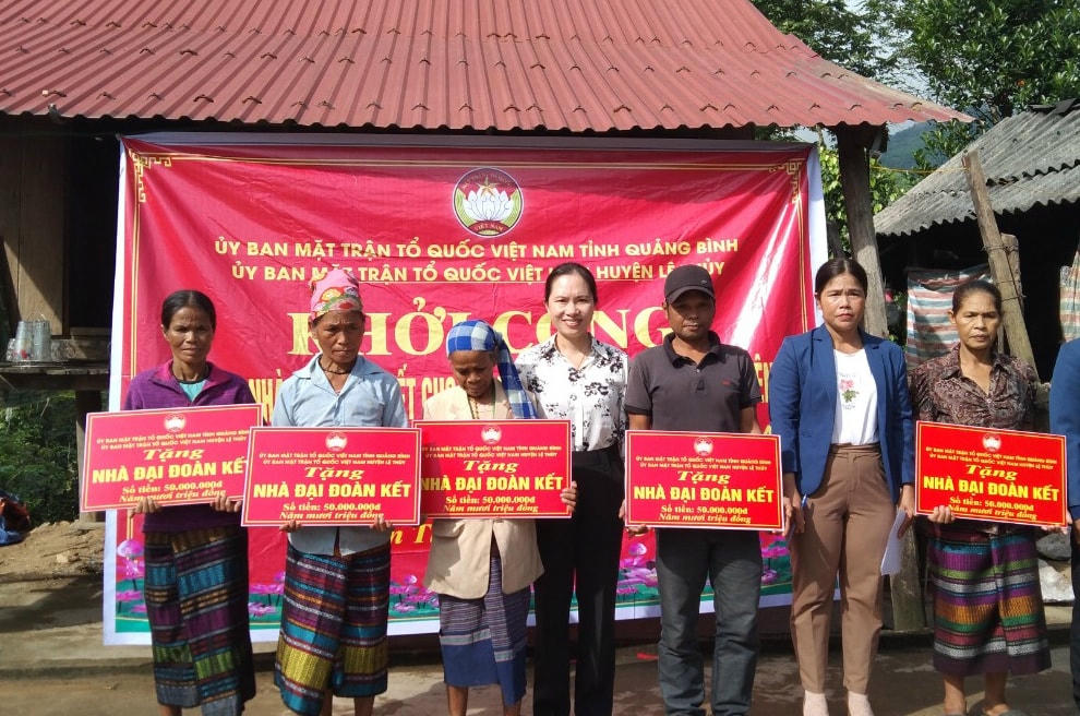 Bà Ninh Thị Hoà, Chủ tịch Ủy ban MTTQ huyện Lệ Thủy Ninh Thị Hòa cho biết, từ đầu năm 2023 đến nay, Mặt trận huyện đã tổ chức khởi công xây dựng được 75 nhà “Đại đoàn kết”. Trong đó, 51 nhà được Quỹ Cứu trợ tỉnh hỗ trợ với tổng nguồn kinh phí hơn 2,5 tỷ đồng; 24 nhà được Quỹ Vì người nghèo huyện và tỉnh hỗ trợ với tổng kinh phí 825 triệu đồng.