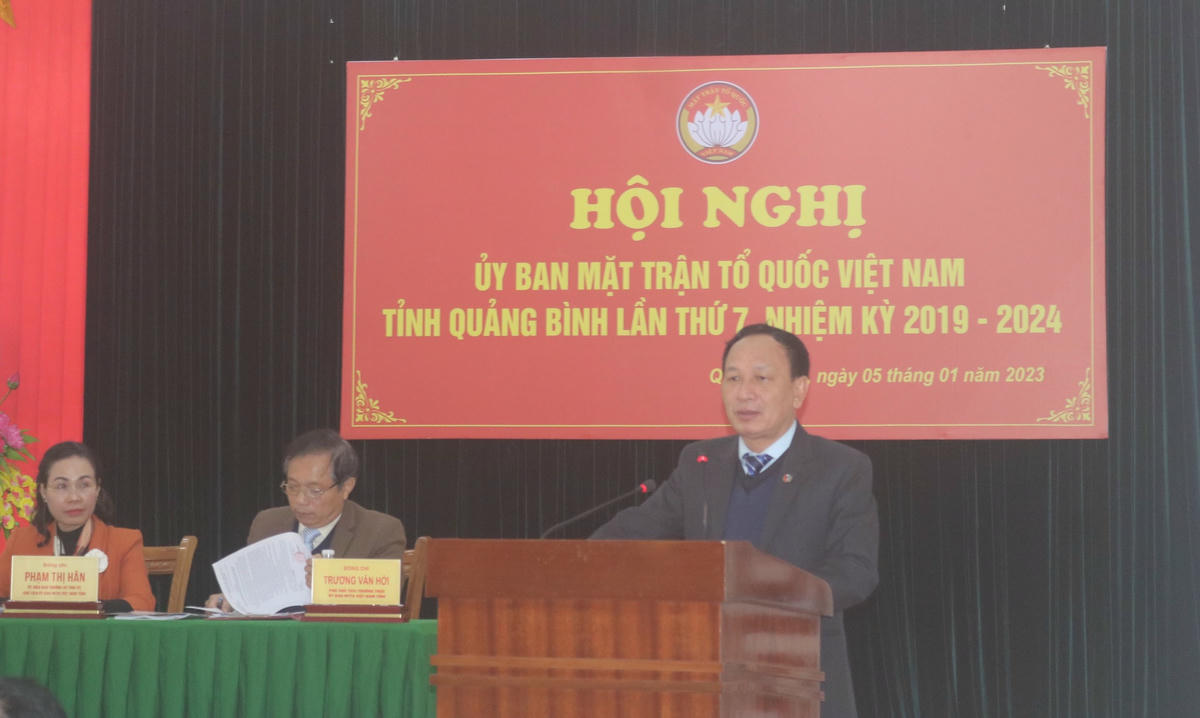 Ngày 5/1, Ủy ban MTTQ tỉnh Quảng Bình tổ chức hội nghị lần thứ 7, nhiệm kỳ 2019-2024 để tổng kết công tác Mặt trận năm 2022 và triển khai chương trình phối hợp thống nhất hành động năm 2023.