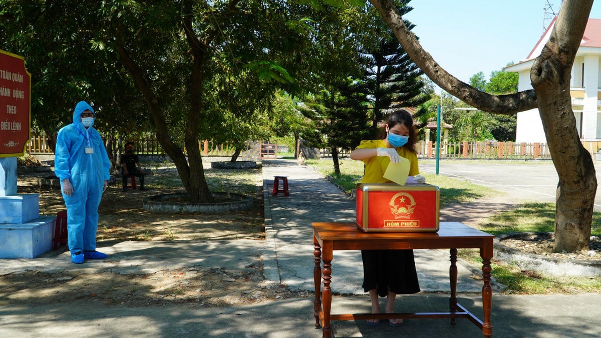 Quan sát tại khu vực bầu cử số 10 của khu cách ly y tế tập trung trường Quân sự tỉnh cũ (Trung đoàn 996) được thực hiện đúng theo quy định phòng dịch Covid-19. Các thành viên tổ bầu cử mặc đồ bảo hộ; tại điểm bầu cử có đầy đủ khẩu trang, nước sát khuẩn; các bàn phát phiếu, ghi phiếu, bỏ phiếu và đóng dấu đã bỏ phiếu được bố trí theo quy trình 1 chiều.