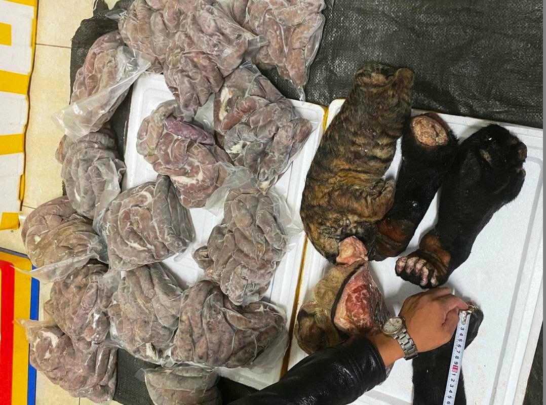 Ngày 27/11, Cục Quản lý thị trường (QLTT) Quảng Bình cho biết, đơn vị vừa phối hợp Phòng Cảnh sát giao thông (Công an tỉnh Quảng Bình) kiểm tra và phát hiện ô tô khách BKS 48B-004.80 vận chuyển 1 cá thể nghi là hổ con đã chết với trọng lượng 2,2kg, 4 chân động vật (nghi là chân gấu) có trọng lượng 5kg và 2,5kg thịt (nghi là thịt hổ) thuộc danh mục động vật rừng nguy cấp, quý, hiếm.
