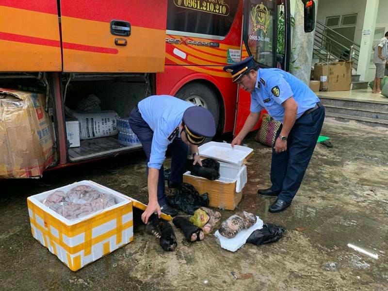 Quảng Bình: Phát hiện xe khách nghi vận chuyển xác hổ con, chân gấu
