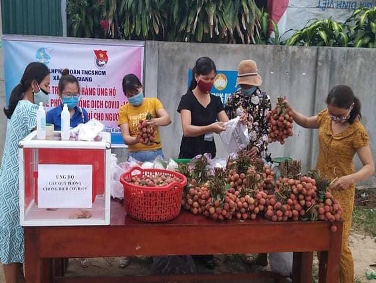 Còn tại xã Triệu Giang (huyện Triệu Phong, tỉnh Quảng Trị), Hội Liên hiệp phụ nữ xã đã tổ chức phiên chợ nông sản là những loại trái cây được thu mua từ người dân ở các địa phương bị ảnh hưởng bởi dịch bệnh. Bà Nguyễn Thị Phương Lan, Chủ tịch Hội LHPN xã cho biết, để chuẩn bị cho phiên chợ này, Hội đã liên hệ với người quen để nhập các mặt hàng có nguồn gốc xuất xứ và đảm bảo chất lượng như vải thiều được vận chuyển về từ Bắc Giang, mận của Sơn La và ổi ở các huyện trong địa bàn tỉnh Quảng Trị.
