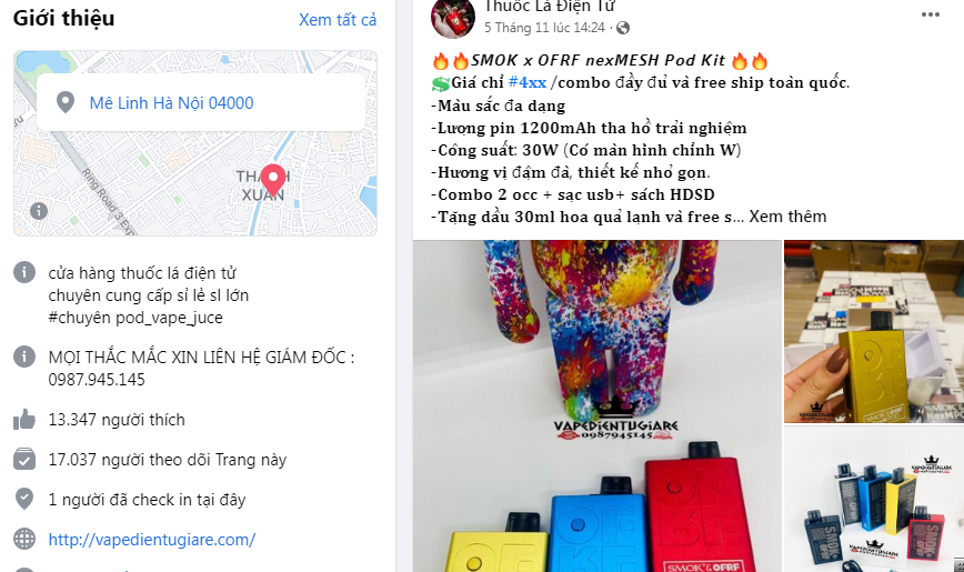 Mặc dù thuốc lá nói chung, thuốc lá điện tử nói riêng là mặt hàng cấm quảng cáo nhưng trên thực tế không khó để bắt gặp các quảng cáo thuốc lá trên nền tảng mạng xã hội.