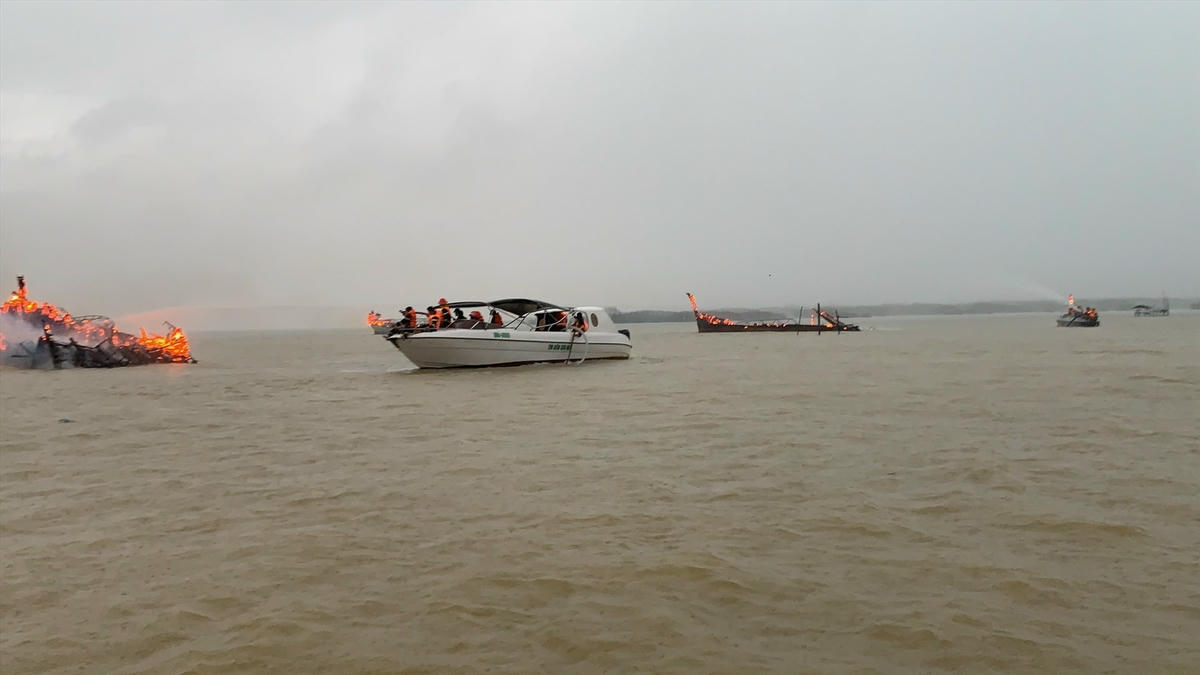 Quảng Nam: 3 tàu gỗ cùng 5 cano neo đậu tại bến Cửa Đại bốc cháy lớn