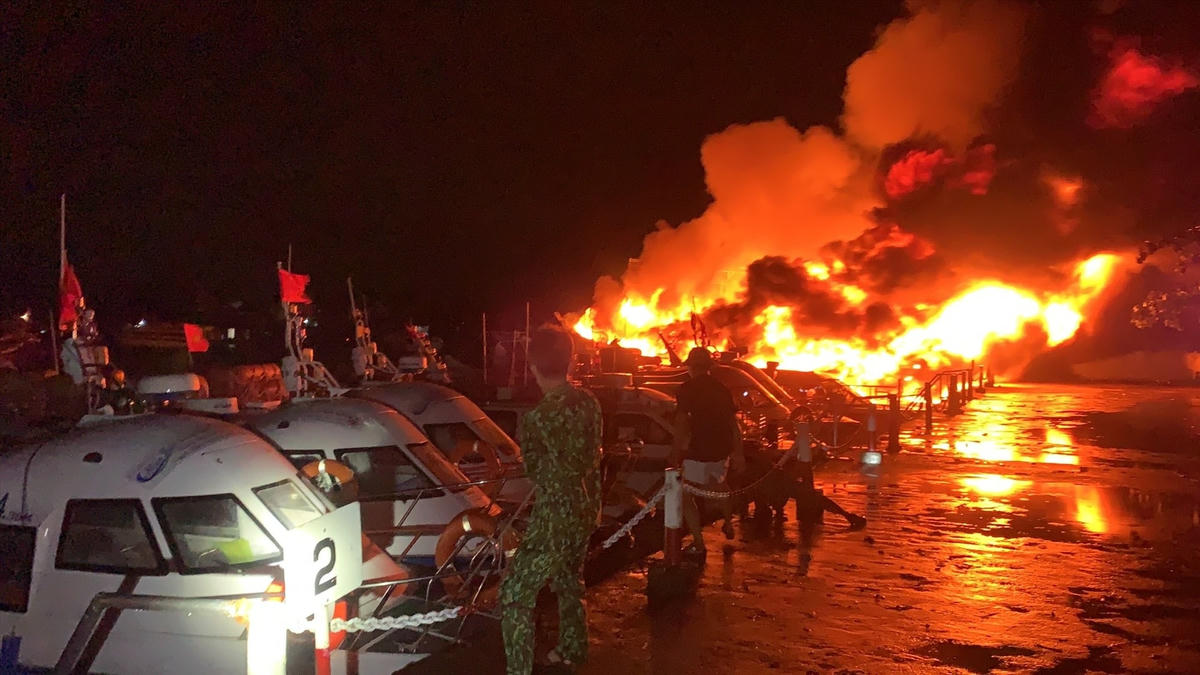 Tiếp đến, Đồn Biên phòng đã điện báo lực lượng Cảnh sát phòng cháy chữa cháy, phối hợp với các lực lượng di chuyển các phương tiện neo đậu gần khu vực cháy. Lúc này, đám cháy rất to do trời gió mạnh nên công tác chữa cháy rất khó khăn.