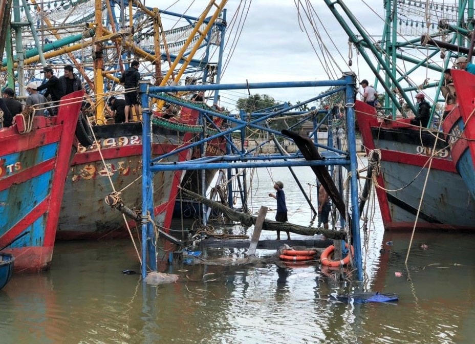 Chiều 22/12, ông Lê Xuân Tới, Phó Chủ tịch UBND xã Bình Minh, huyện Thăng Bình, tỉnh Quảng Nam cho biết, một tàu cá địa phương đang neo đậu tại âu thuyền Hồng Triều bị chìm.