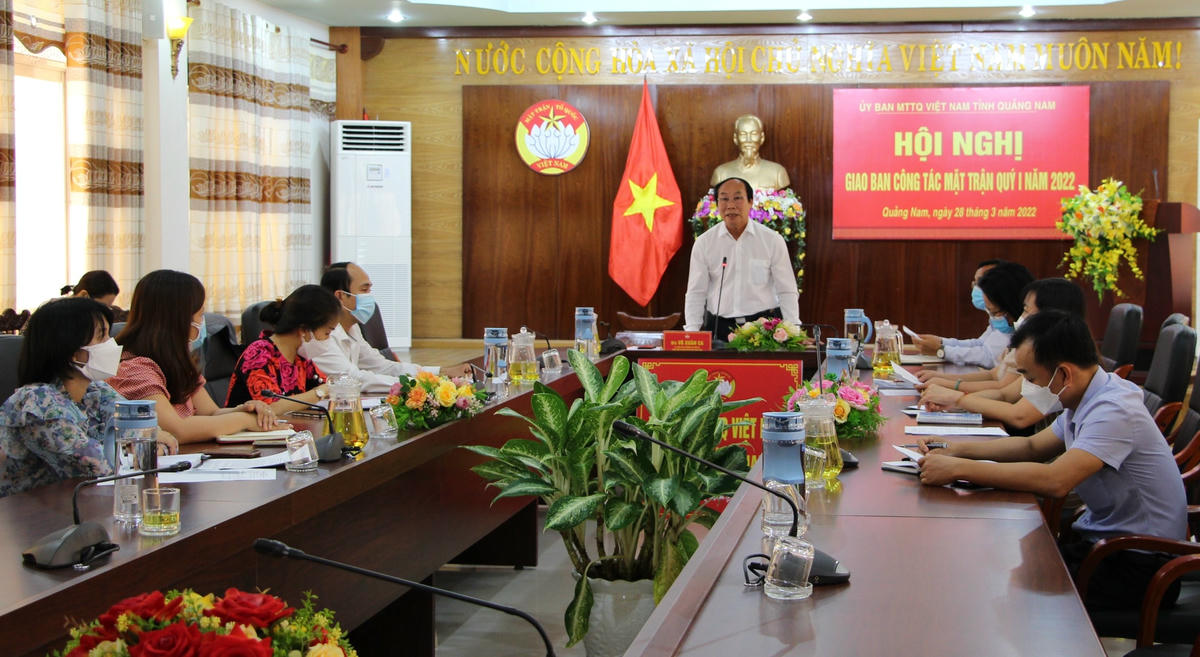Ngày 29/3, Ủy ban MTTQ Việt Nam tỉnh Quảng Nam tổ chức hội nghị trực tuyến giao ban công tác Mặt trận quý 1 năm 2022. Ông Võ Xuân Ca, Chủ tịch Ủy ban MTTQ Việt Nam tỉnh Quảng Nam chủ trì hội nghị.