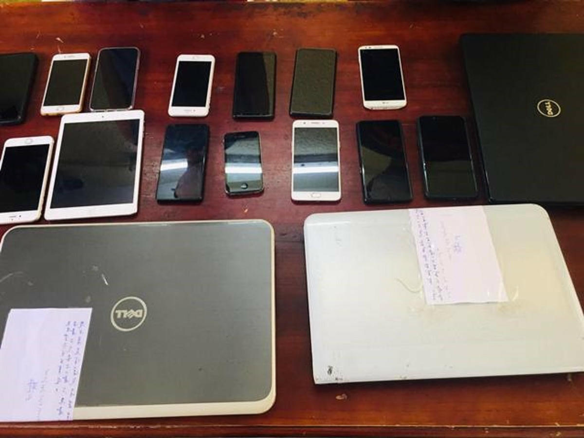Hiện nay Công an TP Tam Kỳ đã thu hồi 3 máy laptop, 1 Ipad, 12 điện thoại di động các loại.