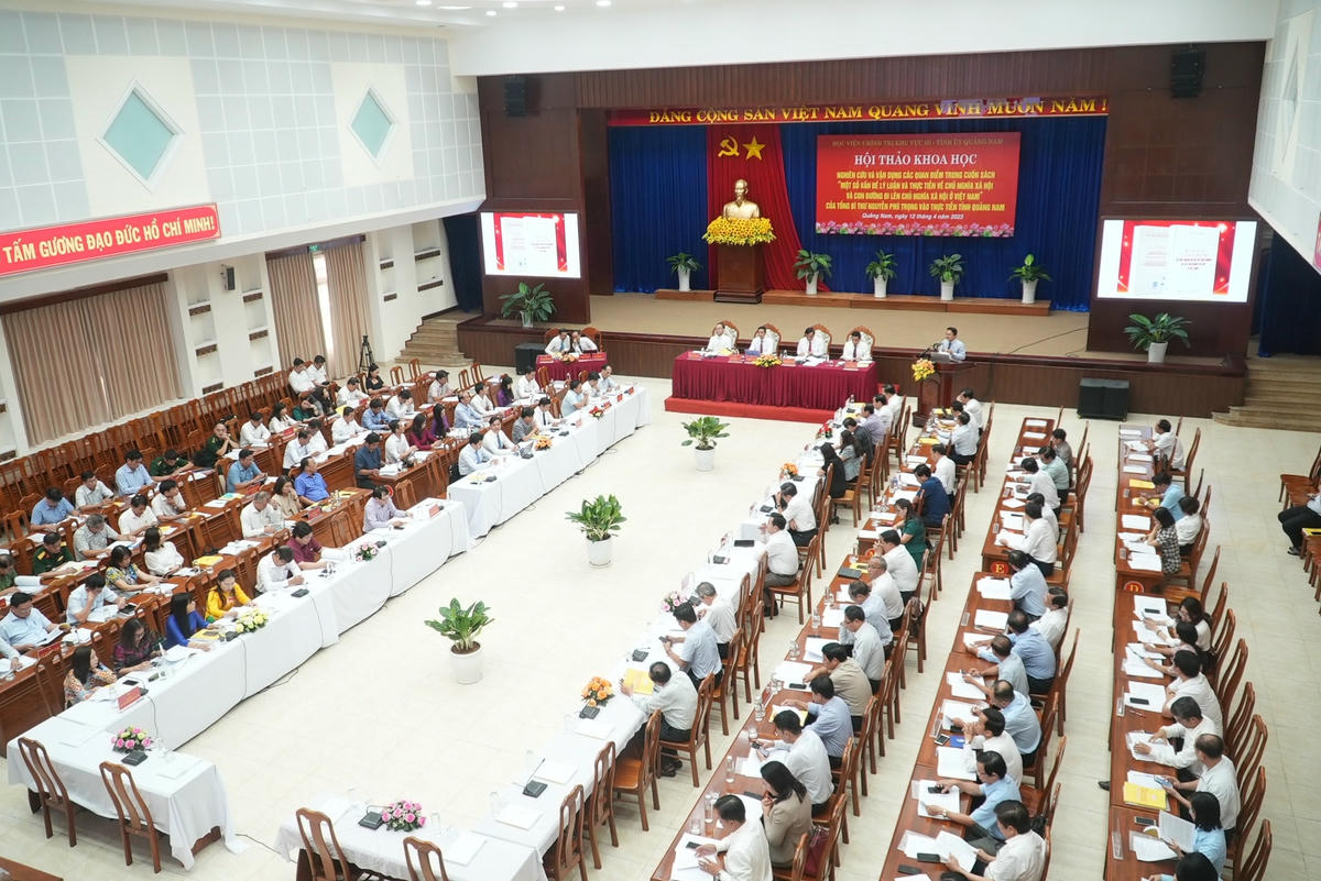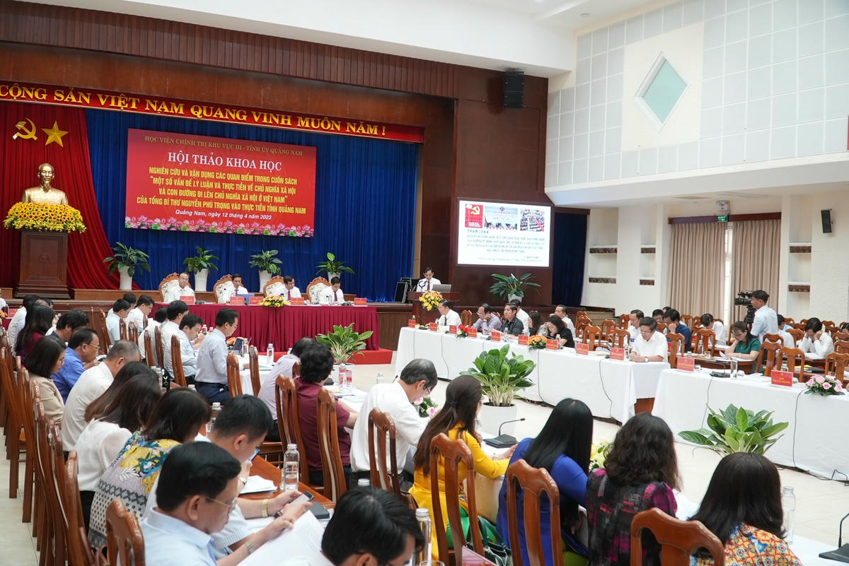 Hội thảo khoa học Nghiên cứu và vận dụng các quan điểm trong cuốn sách “Một số vấn đề lý luận và thực tiễn về CNXH và con đường đi lên CNXH ở Việt Nam” của Tổng Bí thư Nguyễn Phú Trọng vào thực tiễn tỉnh Quảng Nam nhằm thảo luận để làm rõ quan điểm, nội dung cốt lõi, giá trị khoa học, tính thời sự sâu sắc trong cuốn sách để vận dụng sáng tạo vào thực tiễn xây dựng và phát triển tỉnh Quảng Nam.