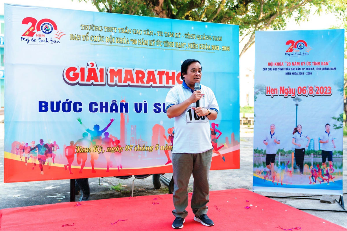 Ông Phạm Hoàng Hồng Minh - Cựu học sinh Lớp 12/5 Trường THPT Trần Cao Vân, niên khoá 2003-2006, Phó Trưởng Ban Tổ chức phát biểu Khai mạc Giải Marathon cho biết: Hòa chung trong không khí của những ngày tháng 5 lịch sử; thiết thực tổ chức các hoạt động kỷ niệm 69 năm ngày chiến thắng Điện Biên Phủ, 133 năm ngày sinh Chủ tịch Hồ Chí Minh, hưởng ứng Lễ hội “Tam Kỳ mùa hoa sưa” và hướng đến Hội khóa “20 năm ký ức tình bạn” của cựu học sinh Trường THPT Trần Cao Vân niên khóa 2003 - 2006, hôm nay Giải Marathon “Bước chân vì sức khỏe” được tổ chức trong sự nồng ấm, vui tươi, phấn khởi nhằm thắt chặt tình cảm bạn bè các Khối lớp thông qua nhịp cầu nối gắn kết giữa các thầy cô giáo Trường THPT Trần Cao Vân, niên khóa 2003 - 2006.