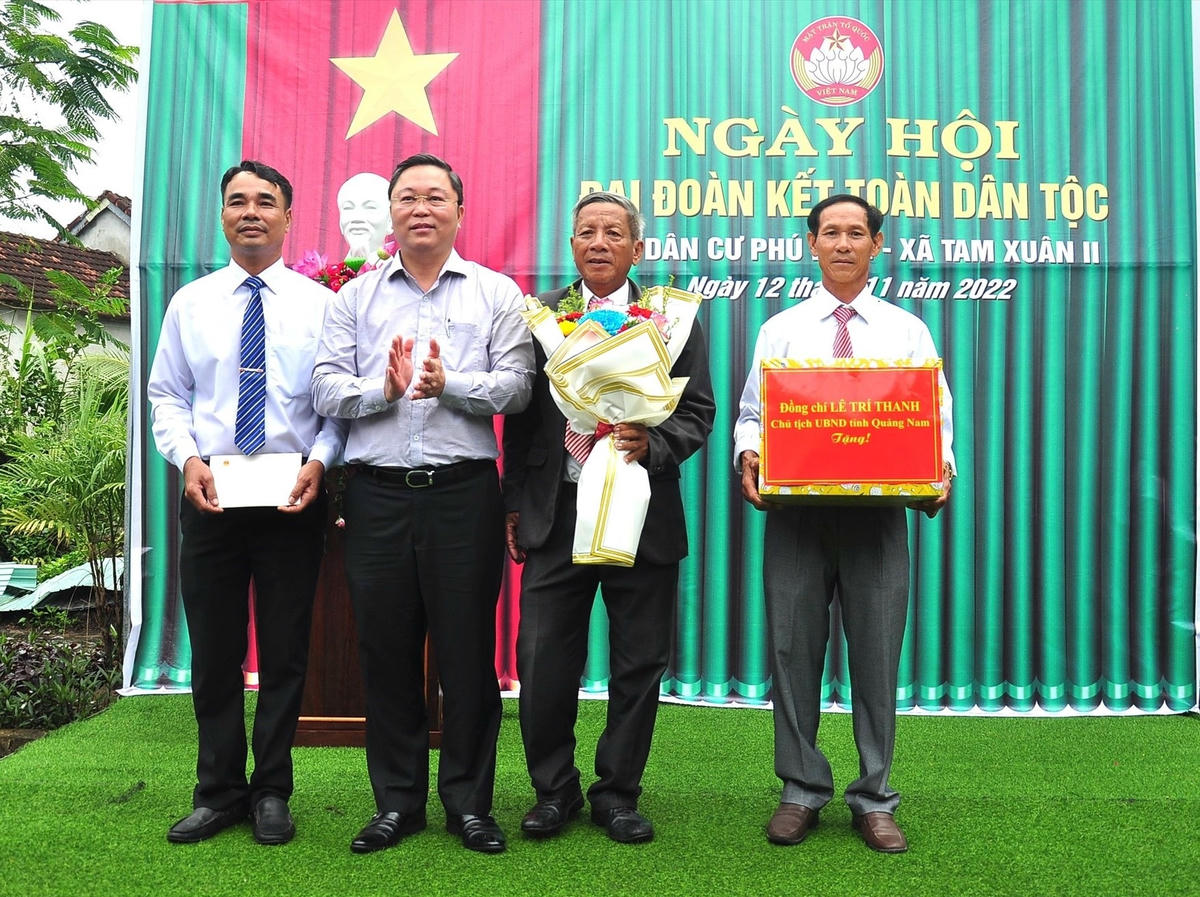 Sáng 12/11, ông Lê Trí Thanh, Chủ tịch UBND tỉnh Quảng Nam đến dự Ngày hội Đại đoàn kết toàn dân tộc tại thôn Phú Nam của xã Tam Xuân 2, huyện Núi Thành, tỉnh Quảng Nam.