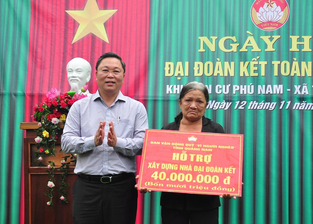 Dịp này, lãnh đạo tỉnh Quảng Nam đã trao biểu trưng xây dựng nhà Đại đoàn kết, trị giá 40 triệu đồng cho 1 hộ dân khó khăn và trao một số suất quà động viên cho gia đình chính sách và hộ có hoàn cảnh khó khăn.